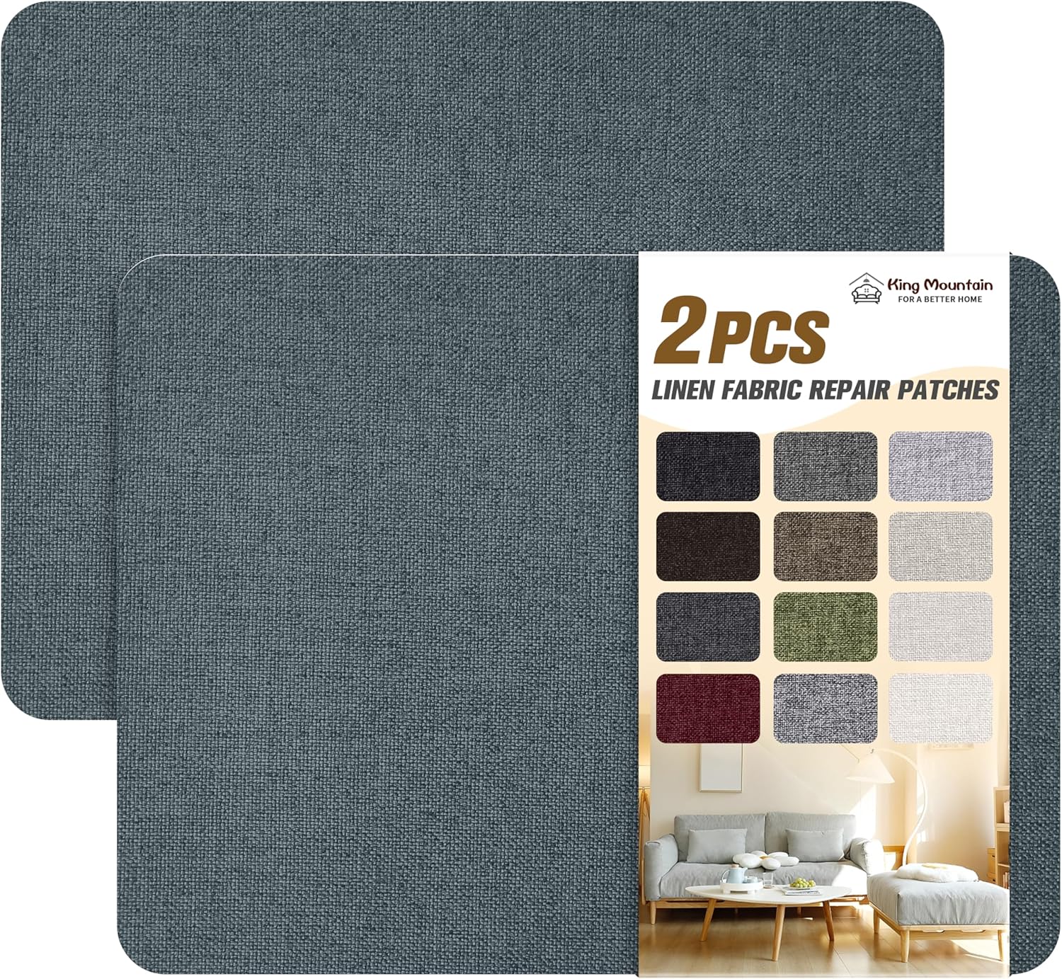 KING MOUNTAIN Coarse Linen Repair Patches, Self-Adhesive Linen Fabric Patches, 8X11 inch 2 PCS, Multi Color, Can be Used for Linen Sofa Repair and Linen Clothes Repair(8" x 11"-2PCS,Blue Dark Grey)