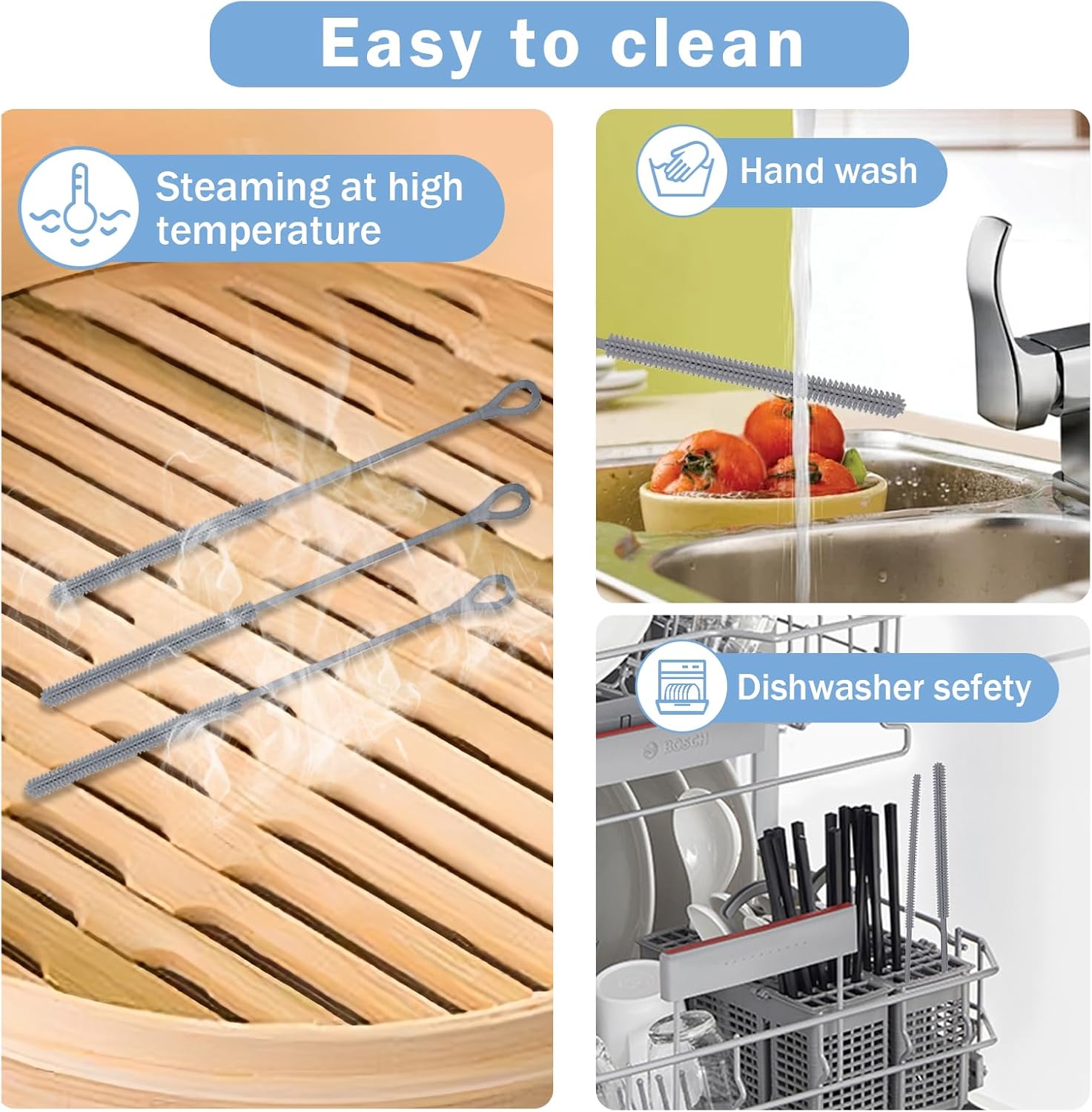- Food-Grade Silicone Straw Cleaner: The reusable silicone straw cleaner is made of food-grade silicone, BPA free, safe and odorless,withstands high temperatures up to 230°C (446°F) for thorough boiling water and steam cleaning,durable cup accessories suitable for daily cleaning of all types of straws