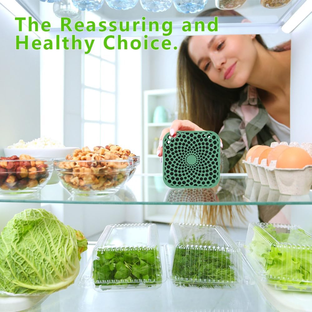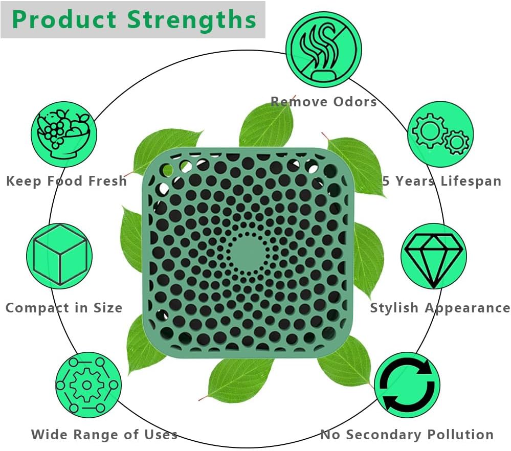 - Convenient and Compact&Having Diverse Uses: Refrigerator deodorizer measures 2.82*2.82*1.32 inches. With a compact size, it won't take up much space. Moreover, it has a trendy appearance design. You can not only place it in the refrigerator, but also use it for odor removal in the bedroom, bathroom, kitchen, wardrobe, car, pet cage and other places.Refrigerator deodorizer is a thoughtful and practical gift for friends and family.