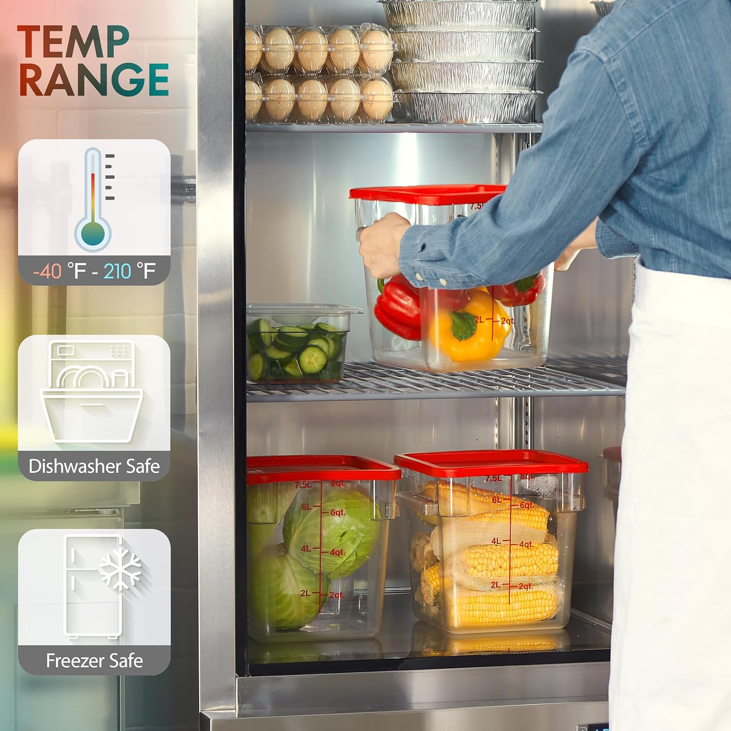 - Stackable Square Design with Easy-Read Graduations - The square profile saves up to 25% more space than round containers and stacks securely with built-in lugs. Bold green measurement markings in quarts and liters make it easy to portion and track inventory at a glance—ideal for both home kitchens and professional use.