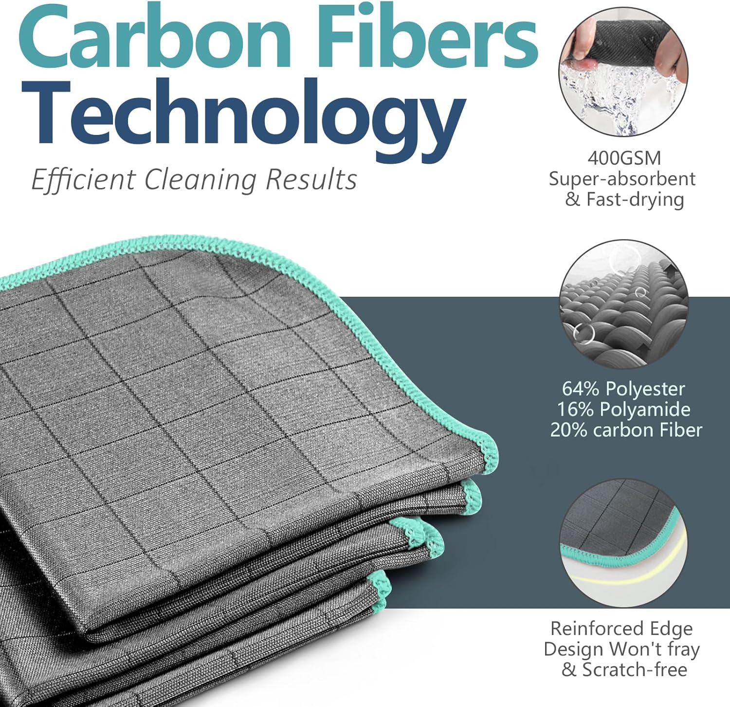 • Carbon Fiber Technology: Airlab streak free miracle microfiber cleaning cloth, made of fabrics up to 400 GSM thickness and incorporating carbon fibers with high tensile strength and dimensional stability, is more absorbent and durable