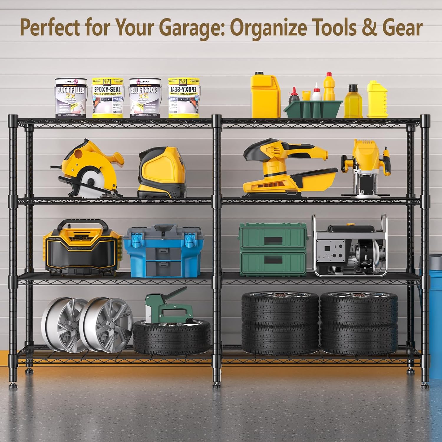 Himimi 4-Tier Adjustable Metal Shelving - 1600LBS Capacity, Heavy Duty Wire Organizer for Kitchen, Garage, Pantry, Laundry, 72" W x 18" D x 60" H, Black