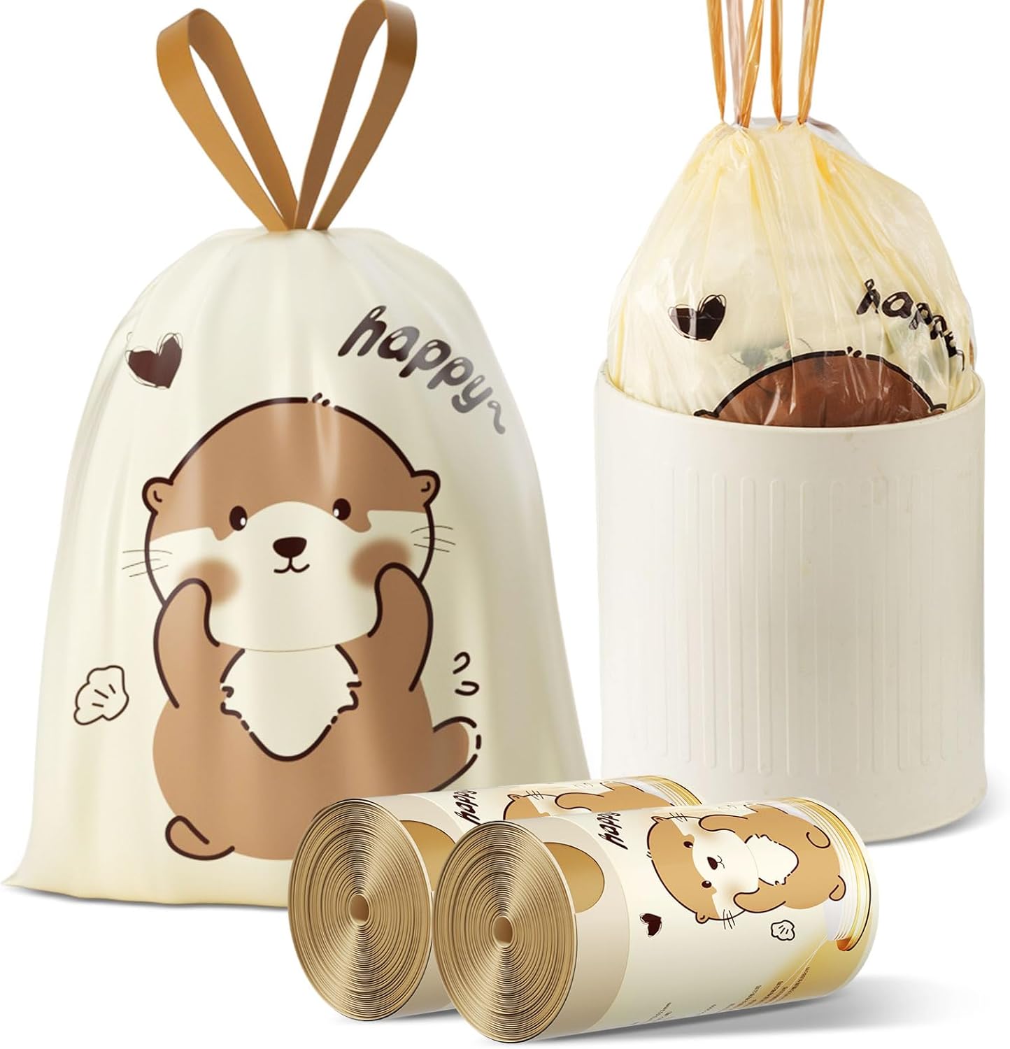 VOK 8 Gallon Trash Bags with Otters Printed, Drawstring Medium Garbage Bags, Tear-Resistant & Odor-Control Kitchen/Bathroom Trash Can Liners, Trash Bags 8 Gallon Drawstring with Secure Tie, 110 Counts