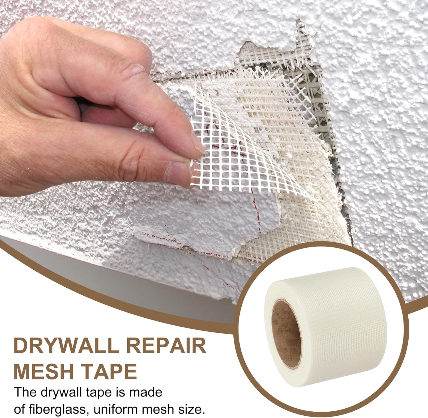 • Color: White; Hole Diameter: 12 Mesh; Total Size: 25 m x 10 cm / 82.02 Ft x 3.94 inch (LxW); Packing List: 1 Pcs x Drywall Repair Mesh Tape