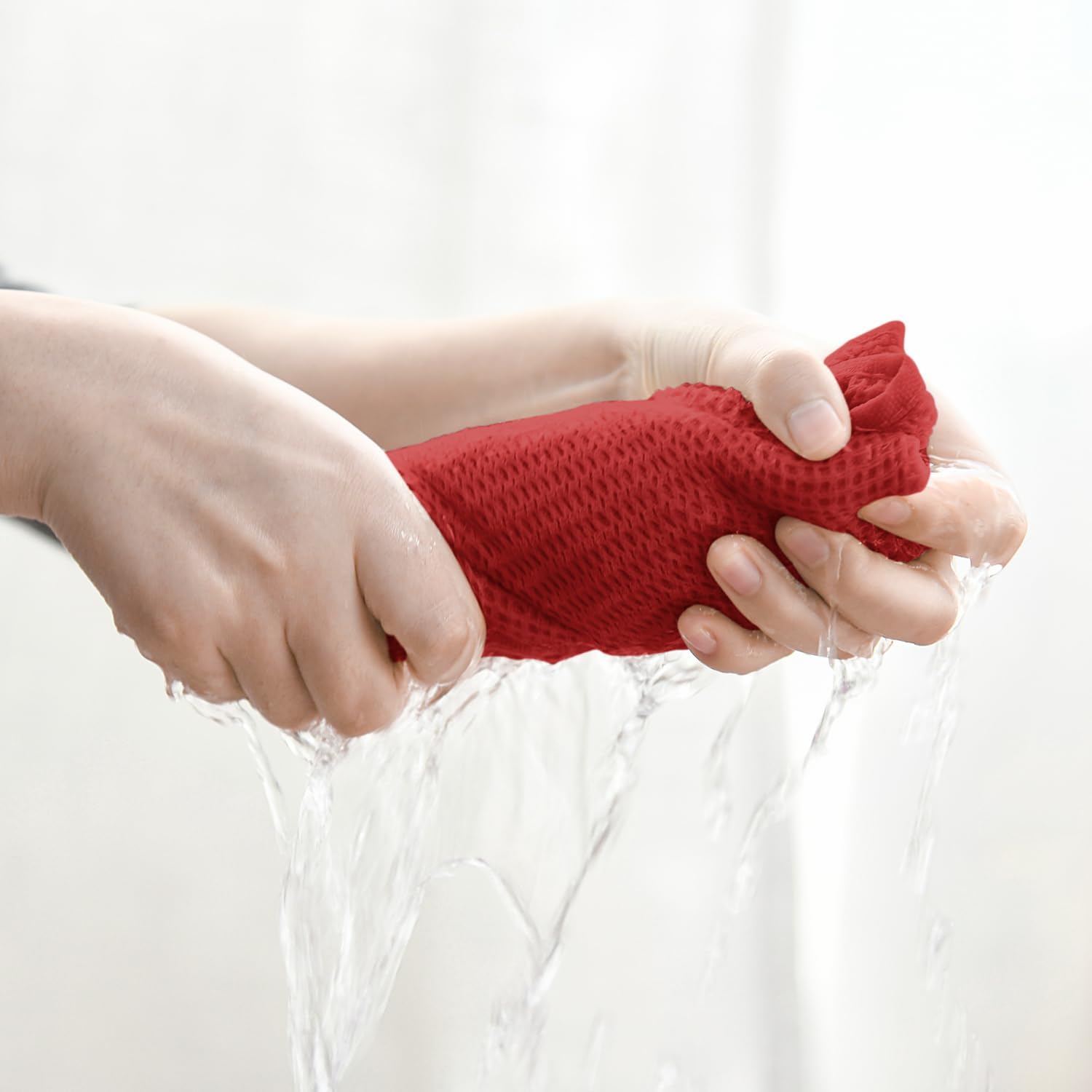 Artoid Mode 100% Cotton Dark Red Waffle Weave Kitchen Dish Cloths, 13x28 Inch Ultra Soft Absorbent Quick Drying Kitchen Dish Towels Set of 4