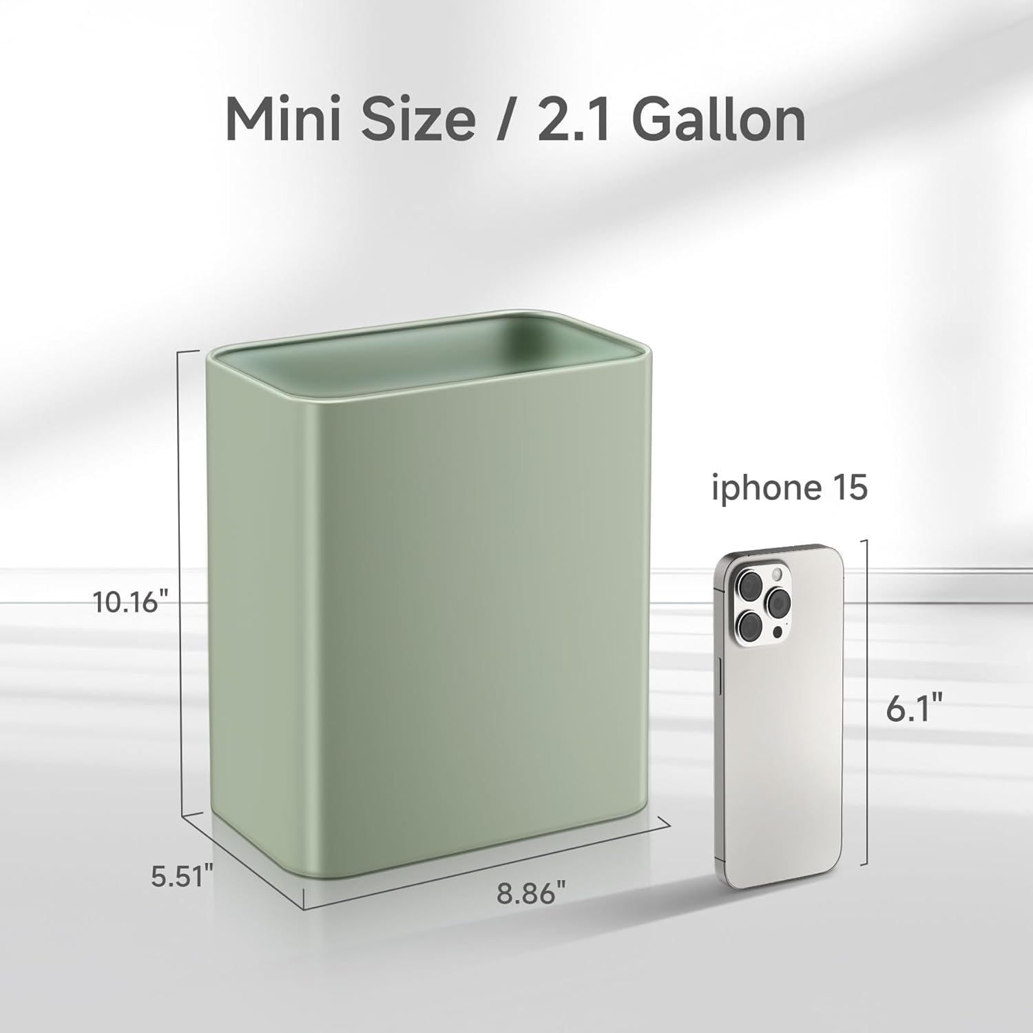 TIPGO Small Metal Trash Can, 2.1 Gallon Slim Trash Can for Bathroom, Wastebasket Garbage Bin for Bedroom, Office, Kitchen, Under Sink (Green)