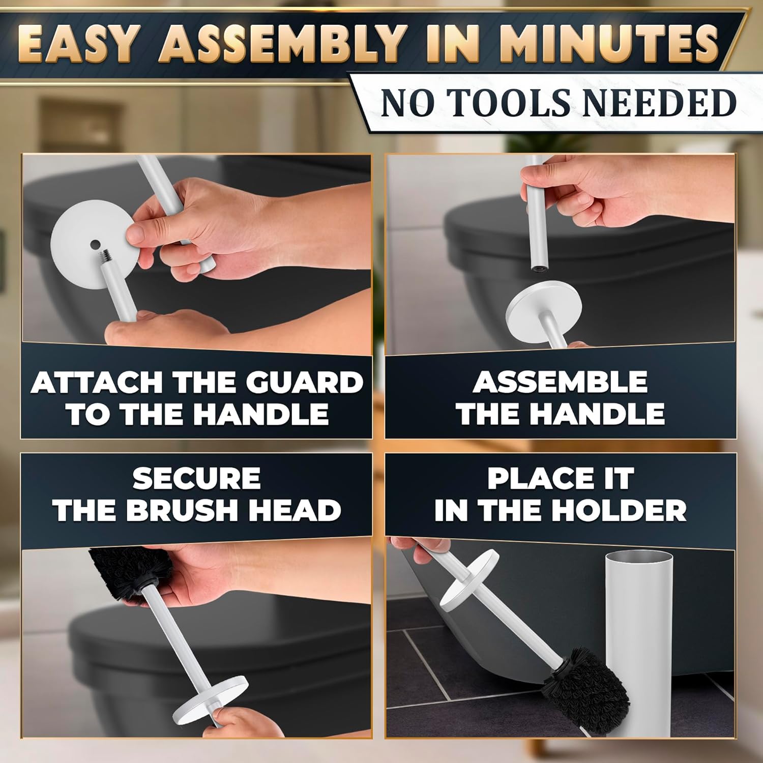 • Splash Guard: Built-in splash guard on the toilet brush cleaner and holder set helps prevent drips & splashes during cleaning, which helps maintain hygiene & simplify post-use storage of bathroom brush cleaner toilet
