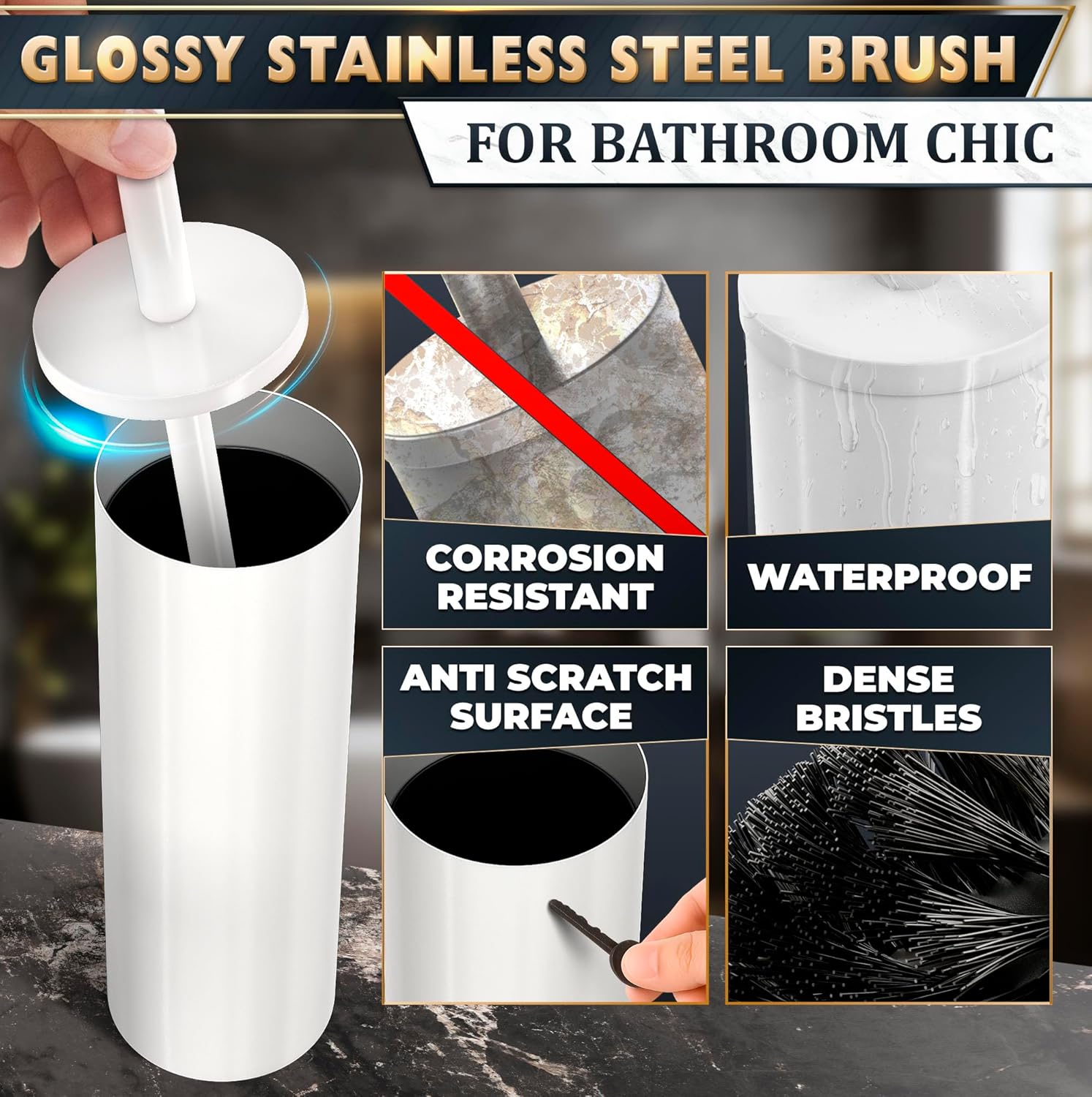 • White-Compatible Design: Our white toilet brush and holder set is crafted from a white-coated stainless steel. This white toilet bowl brush and holder perfectly complements white-toned bathroom