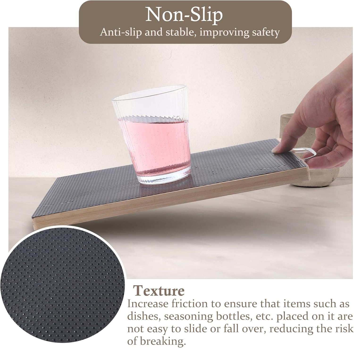 - Non-Slip & Easy to Use- Cabinet shelf drawer liner has decent grip and easy installation. It is designed with anti-slip textured that has slightly raised dots to hold objects in place and you are able to access things in the back of the drawer without any issues of objects moving around. The installation process is straightforward and only requires cutting into the shape and size you want with scissors or a razor,making it easy to customize for different areas in your home.