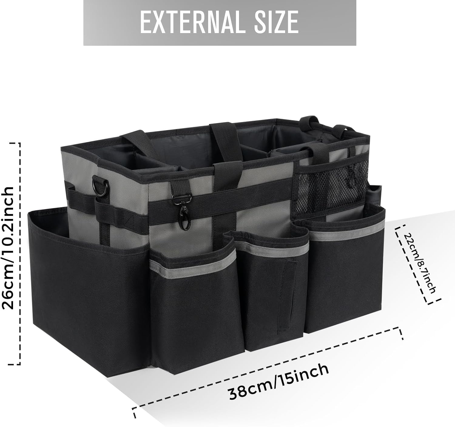 • Large Wearable Cleaning Caddy: Our cleaning organizer bag is perfect for storing cleaning supplies & tools, measures 15.7 x 9.6 x 9.1 inches. Cleaning caddy bag with handle and adjustable shoulder straps for easily cleaning in the home, kitchen, sink, car, and outside. Keep your cleaning items well-organized and neatly. Great for maids and housekeepers