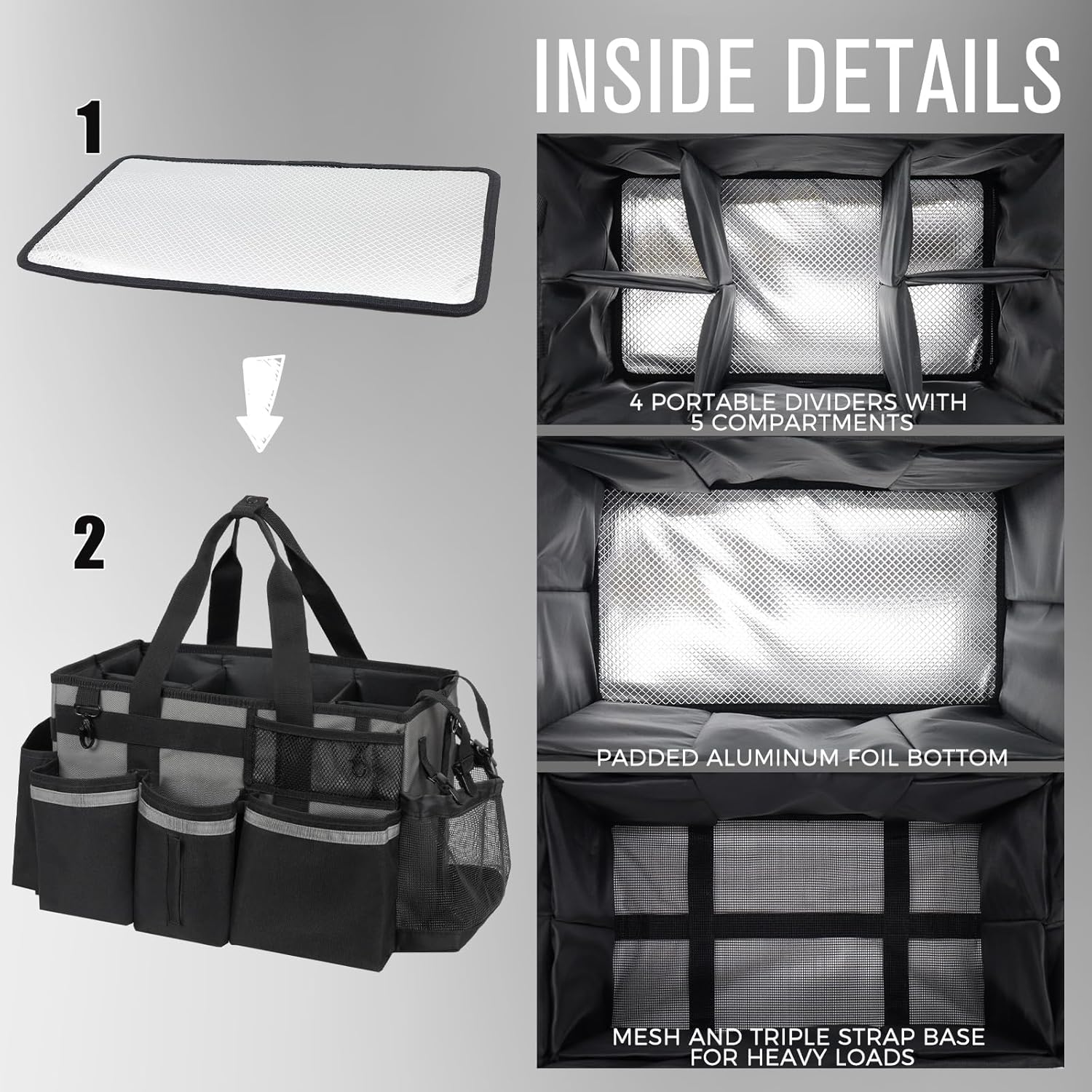 Wearable Cleaning Caddy, Cleaning Caddy Supplies Organizer with Handle & Shoulder Straps for Housekeepers, Under Sink & Car Cleaning Tool Organizers Bag with 4 Foldable Divider (MediumGrey)