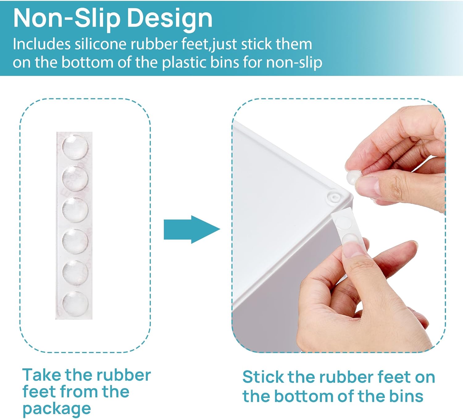 - [Built-in Handle and Non-Slip] The storage containers are designed with pull-out handles, it is convenient for you to store and take out items.Extra silicone pads are included, just stick them on the bottom of the outer box for non-slip,the outer box will not move when the drawer is pulled out,providing you with easy organization and storage.