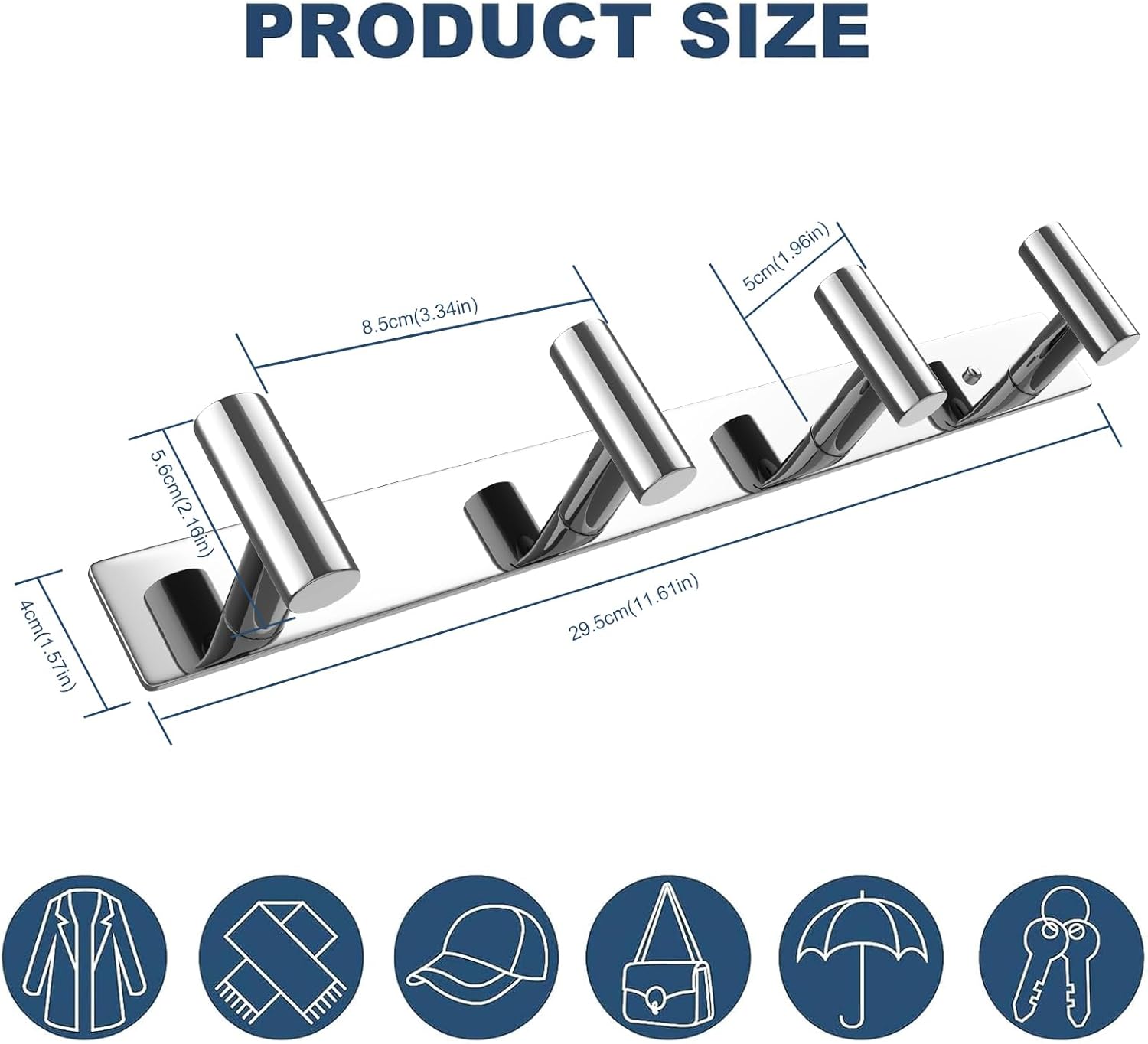 • Versatile Use: This Polished Chrome Row Hook Coat Rack for various locations, including bathrooms, kitchens, living rooms, entrances, and offices. Use it to hang towels, kitchenware, coats, hats, jackets, wallets, keys, and more, adding functionality and organization to your space.