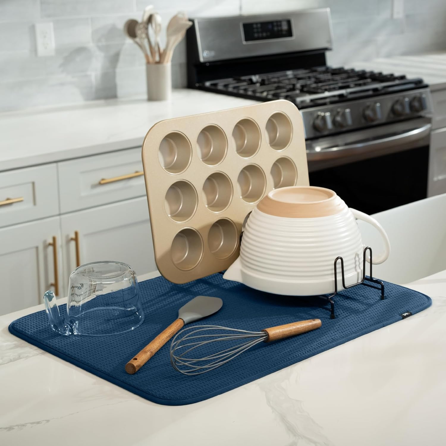 • Dish drying mats for kitchen counter are reusable, machine washable, and easy to store for kitchen organization; durable construction will not chip or break like a stone dish drying mat for kitchen