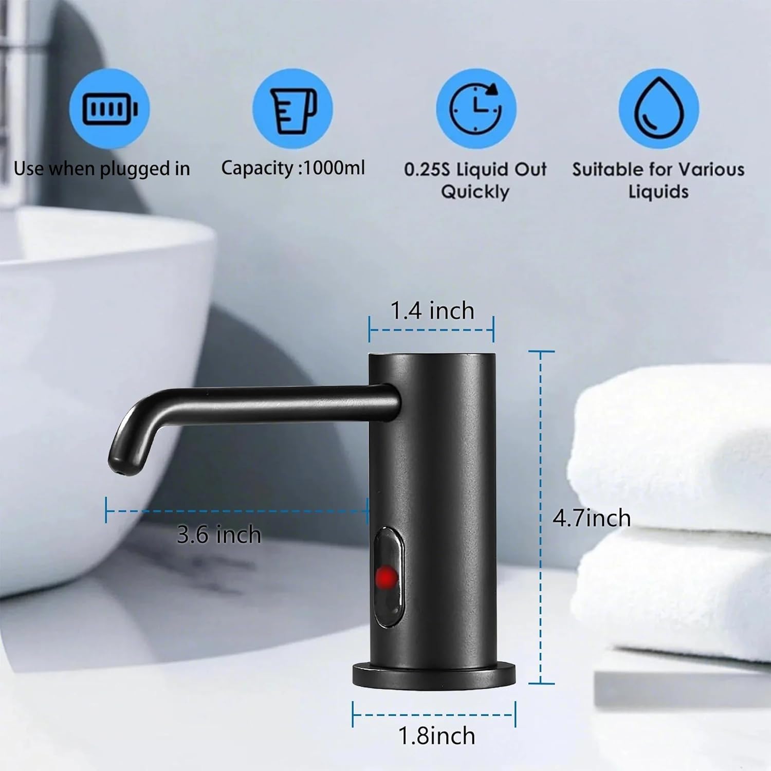 Automatic Soap Dispenser Touchless for Kitchen and Bathroom, Sink Built in Commercial Electric Soap Dispenser,Upgraded Infrared Sensors Brass Material, with Bottle and Pump 33.81oz/1000ml(Black)