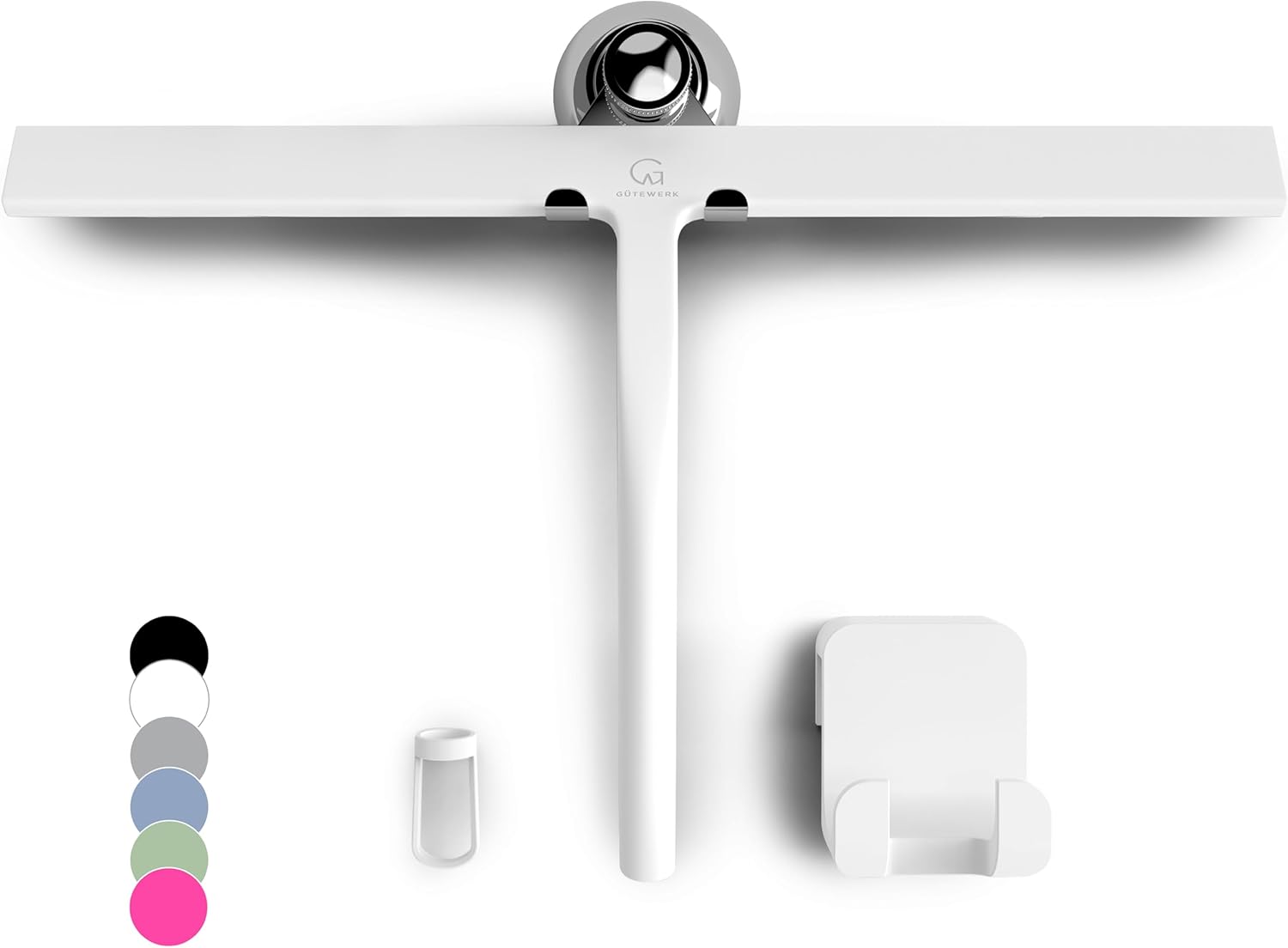 GÜTEWERK Shower Squeegee for Glass Doors, Silicone Window Squeegee, Bathroom and Glass Cleaning - White - 15 Inch