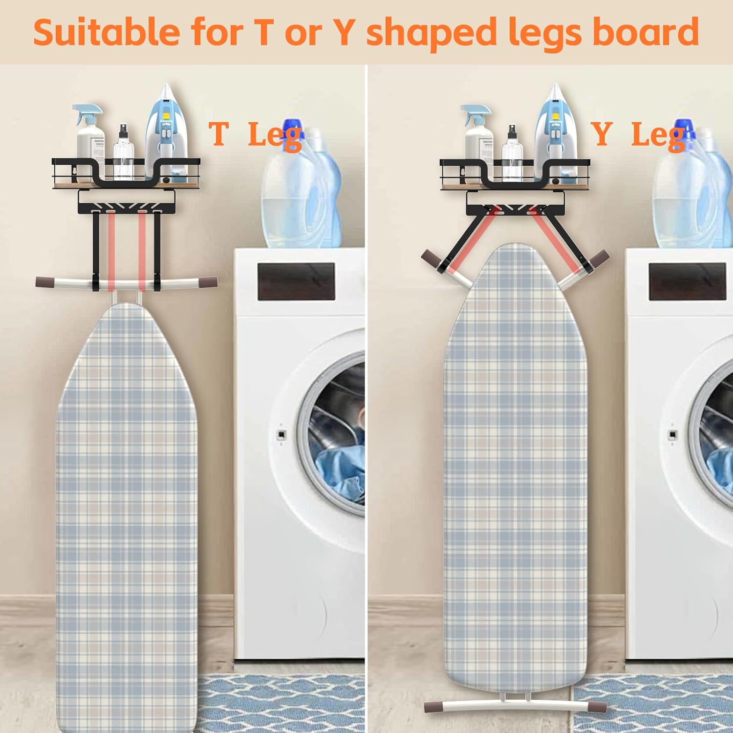 • MAKING YOUR HOME TIDY: The shelves for room wall small iron board hanger can keep all your items in one place, effectively use and organize your space. The ironing board hanger comes with storage metal wooden baskets and removable hooks to hold your iron, ironing stand, spray bottle and other ironing accessories for easy access.