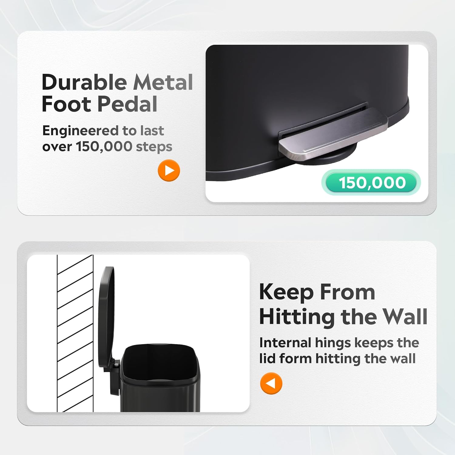 • Ultra-Large Capacity: Effortlessly handle daily waste with a 13-gallon (50L) capacity—perfect for large families looking to reduce trips to the trash. The trash can blends seamlessly into kitchens, living rooms, or home offices with its modern, clutter-free design.