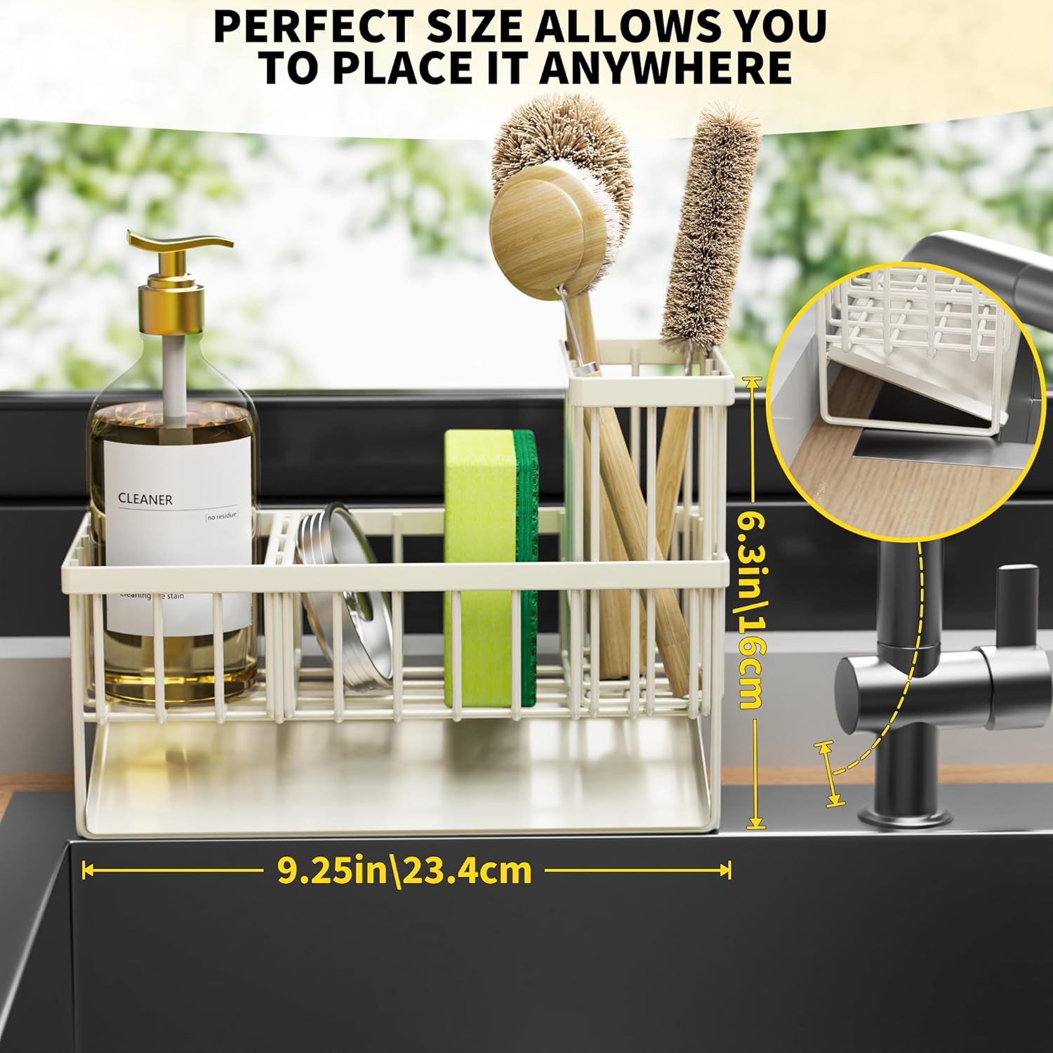 • Cisily Off White Sponge Holder for Kitchen Sink, Sink Caddy Organizer with High Brush Holder, Kitchen Countertop Rustproof 304 Stainless Steel, Soap Dispenser Kitchen Organizers and Storage Essentials