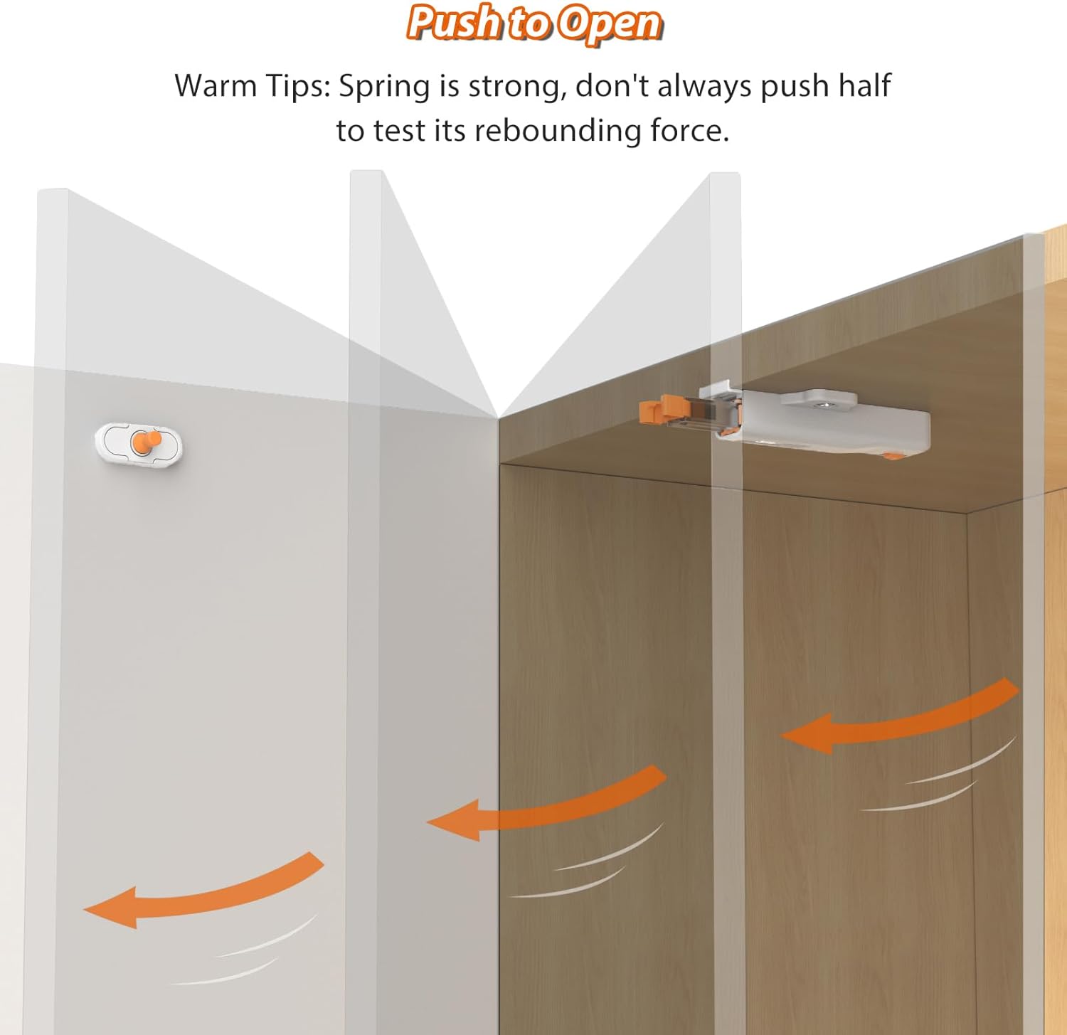 - What's you benefits: Say goodbye to unsightly hardware and enjoy a sleek and minimalistic design with this closet-close that's perfect for any modern home. Get 2 x push to open door latch; Screws; stickers. Our customer-favorite 12-month warranty and friendly customer service.