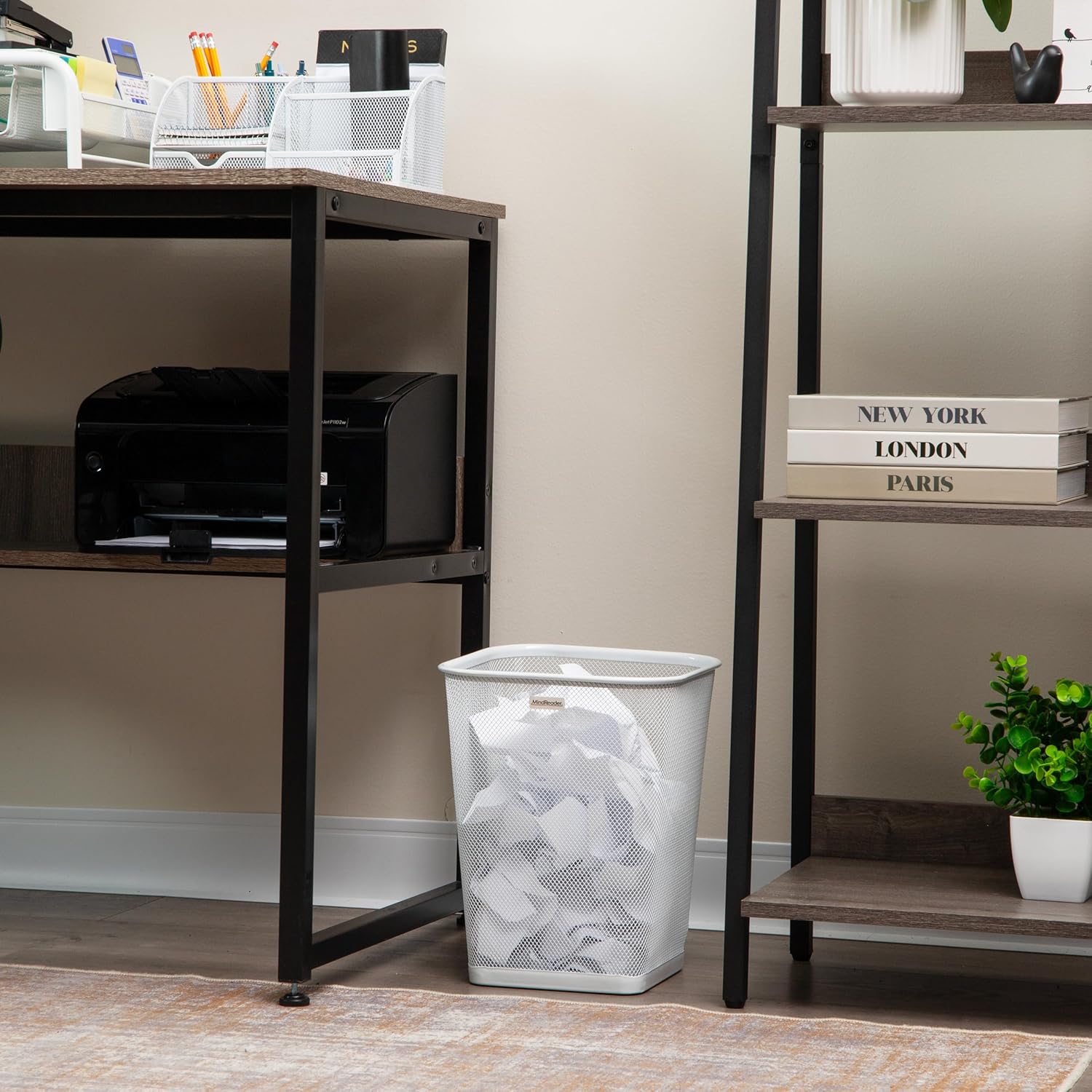 Mind Reader Mesh Trash Can, Square Wastebasket for Office or Home, 5 Gallon Capacity, Metal Mesh, Set of 2, White