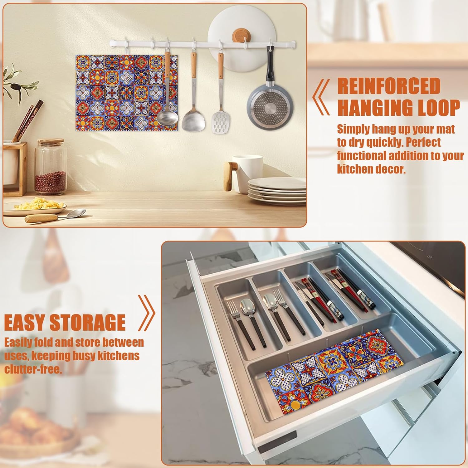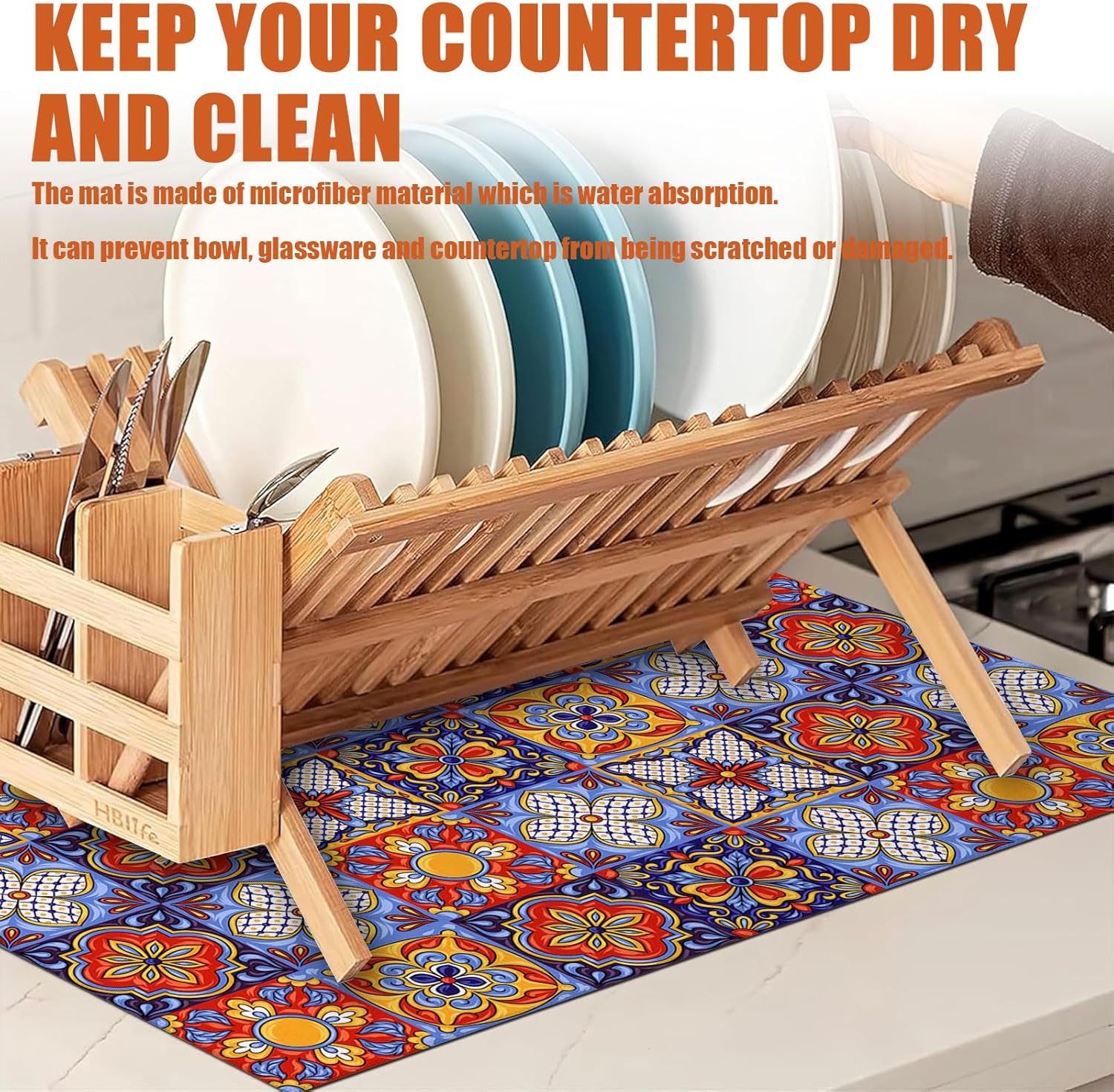 • 【Easy to Clean】The utensil drying mat can be cleaned by hand or machine to remove stains, the kitchen utensil drying mat to dry quickly without a machine. HD printed suede has excellent color lock, does not fade and can be reused many times.