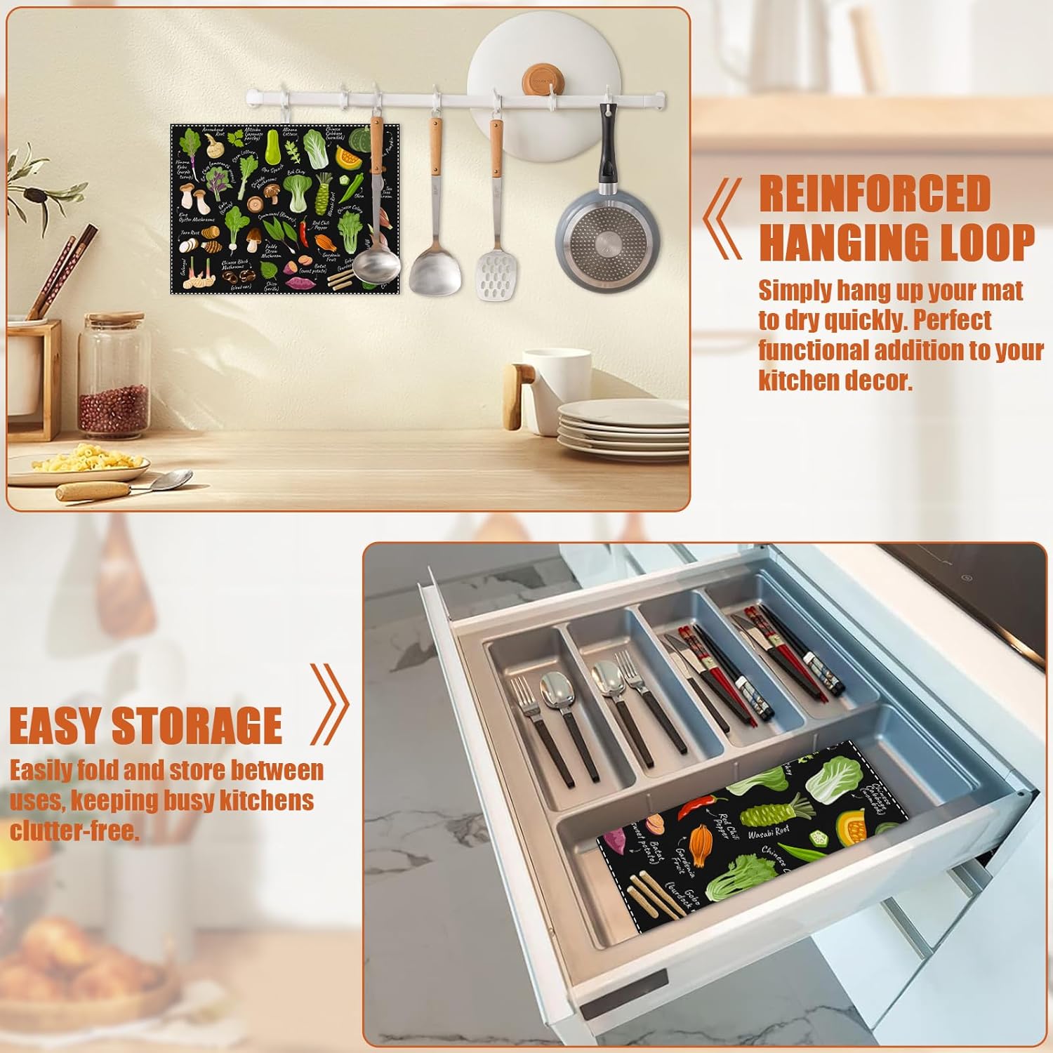 Vegetables Dish Drying Mat for Kitchen Counter Microfiber Absorbent Dish Kitchen Drying Mat Draining Reusable Washable for Dishes/Utensils/Counterto