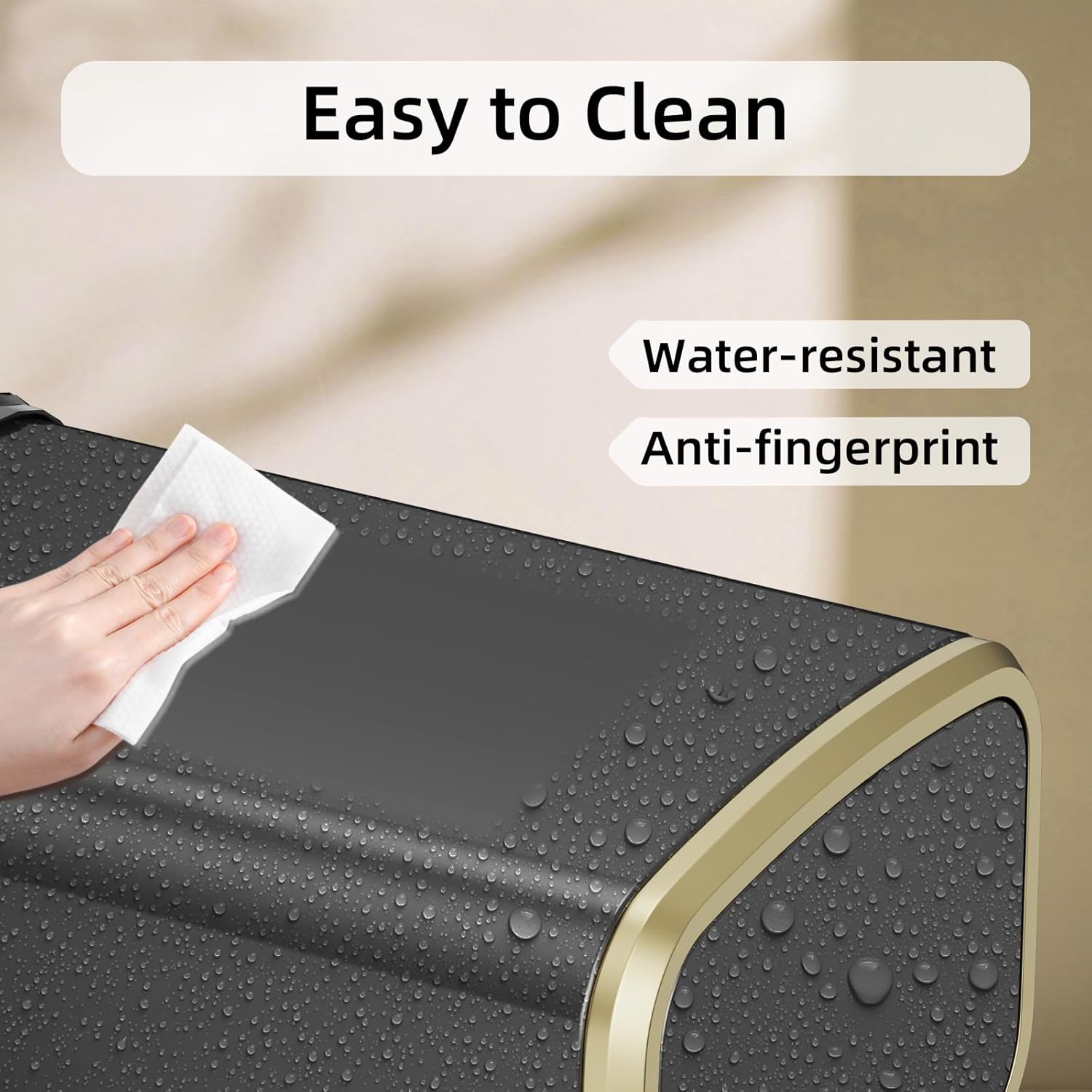 • Hands-Free Swing Lid: Simply toss waste in—the lid glides shut quietly. The extra-wide opening ensures no jams, making disposal effortless.