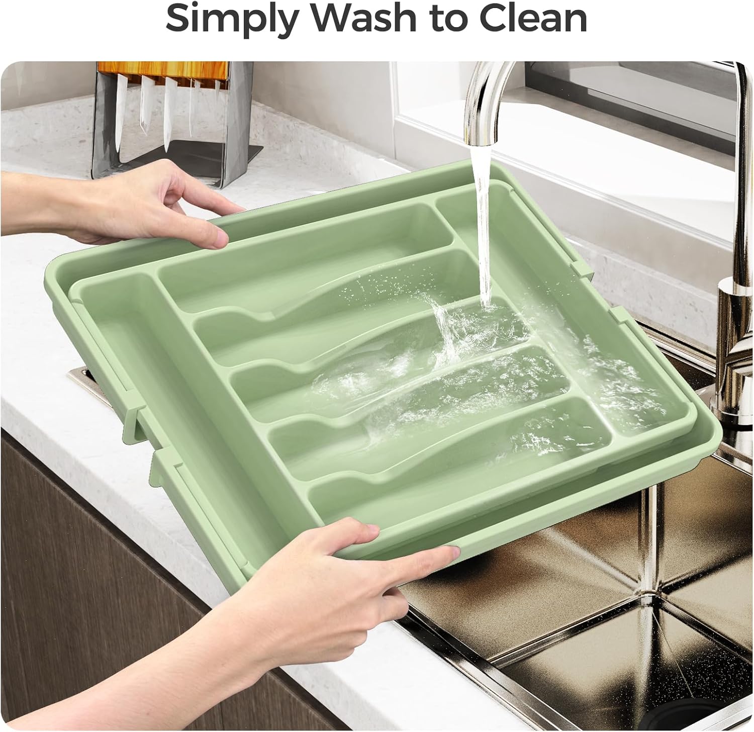 • 【Premium Material】:Made of premium BPA-free plastic, the flatware organizer is food-safe, durable and waterproof, offering a safe choice for storing cutlery.