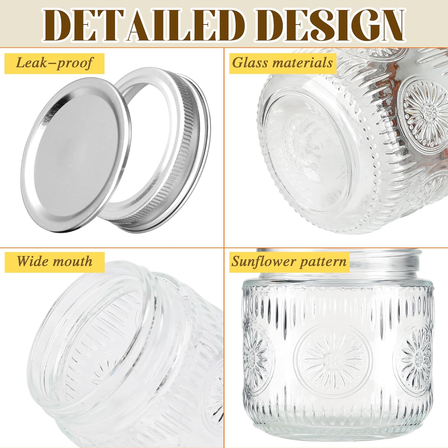 • APPROPRIATE CAPACITY: Each 8oz glass jars perfect for canning jams, jellies, honey, or storing spices and herbs. Also great for DIY crafts, wedding favors, and home décor.