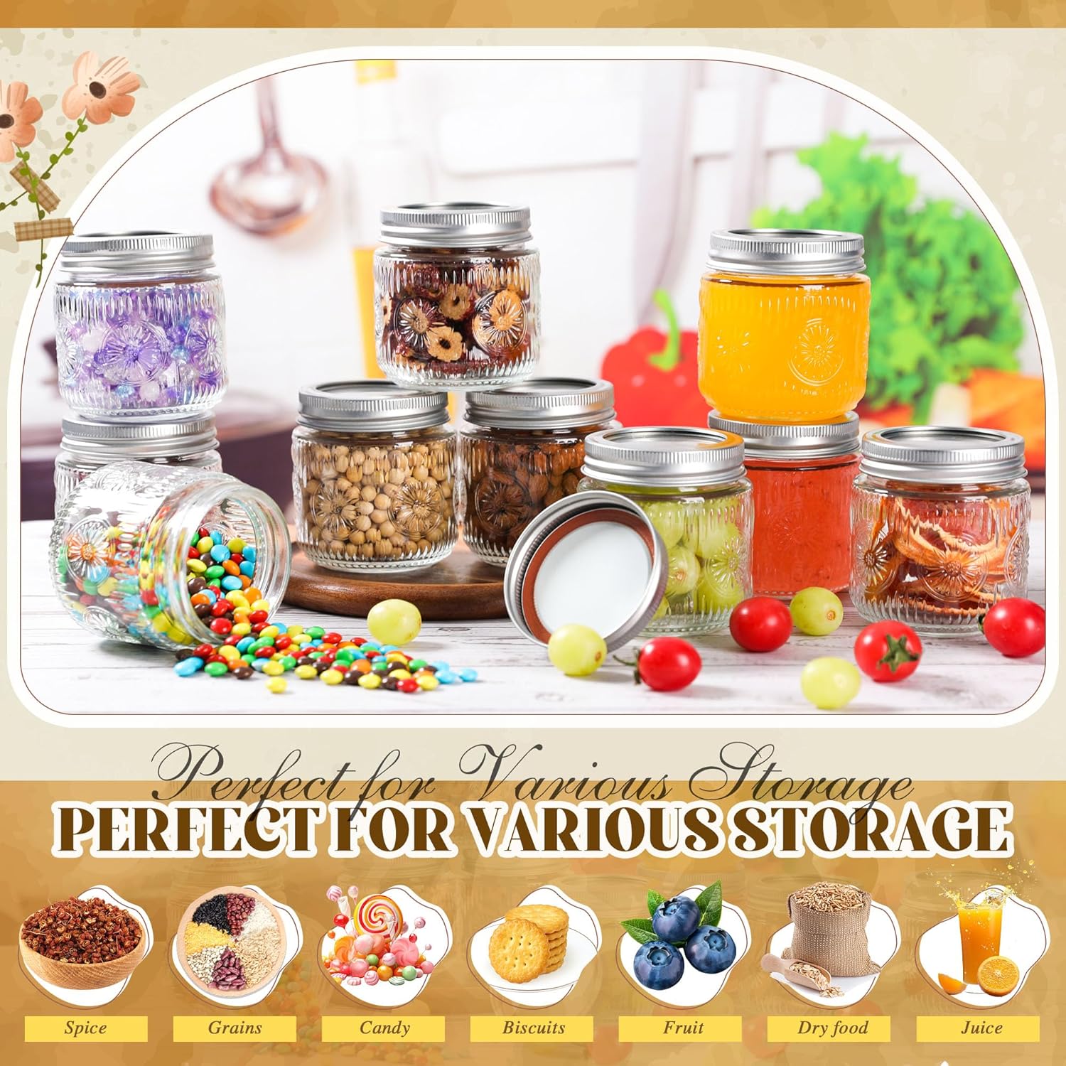 • APPROPRIATE CAPACITY: Each 8oz glass jars perfect for canning jams, jellies, honey, or storing spices and herbs. Also great for DIY crafts, wedding favors, and home décor.
