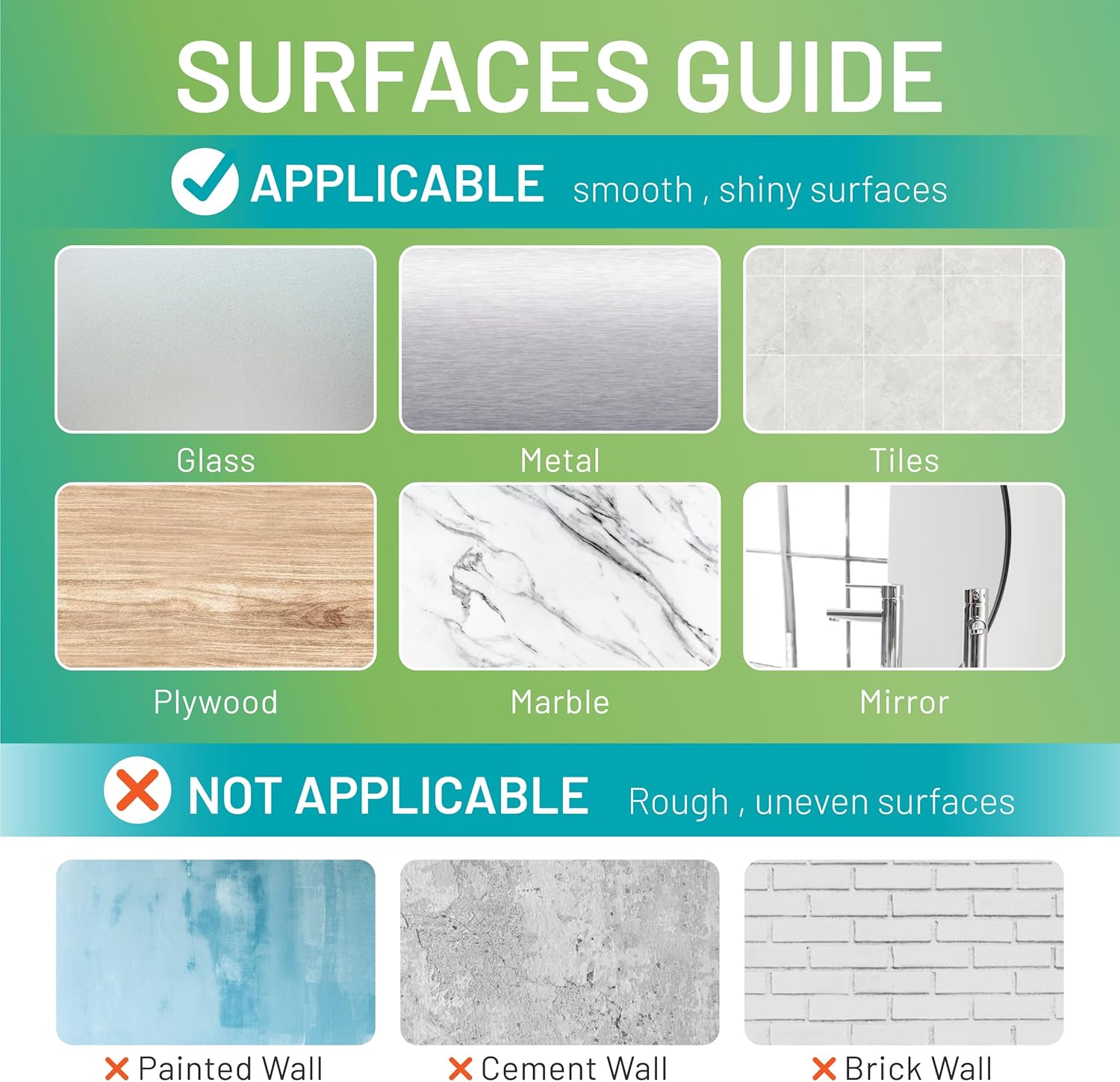 • Easy Tool-Free Installation – No tools needed—installs in seconds with suction or adhesive backing; cleanly removable and reusable.