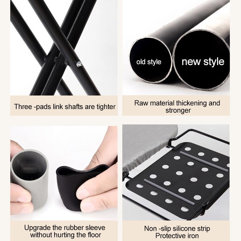 • Adjustable Height: The height can be easily adjusted, with 6 levels of adjustment, so you can adjust the appropriate height for use at any time. The ironing board is fixed in place when in use and closed securely when not in use.