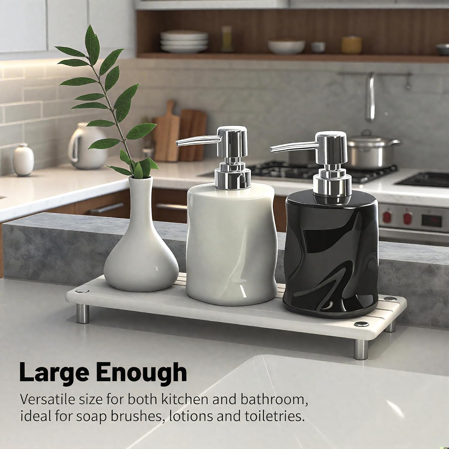 • Multifunctional Water Absorbing Stone Tray for Sink ---- Using this stone drying tray for your soaps / brushes / bottles / Cups / Sponge / Dispenser in the bathroom counter or kitchen sink. The fast drying sink caddy provides you with a neat and orderly space for your home.