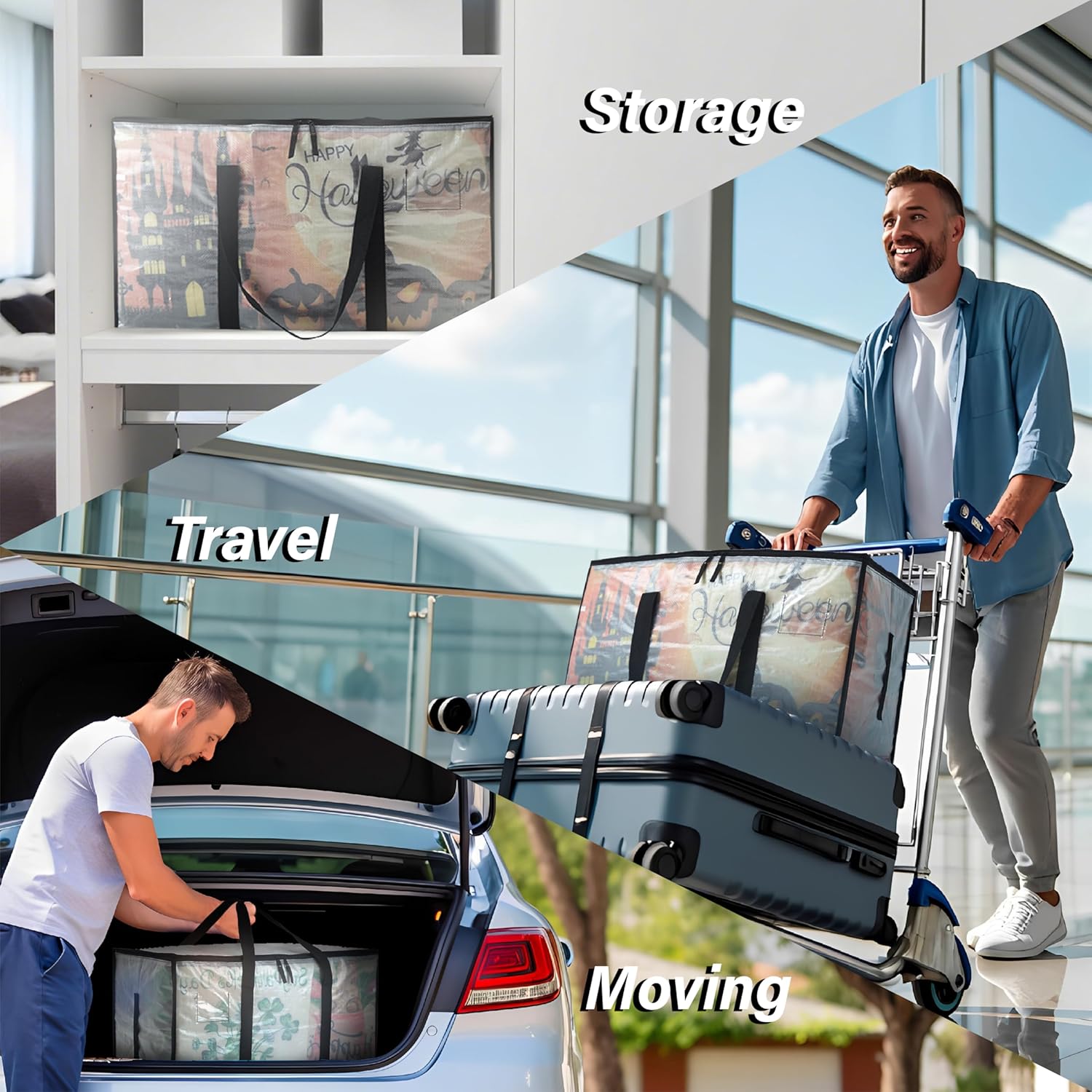 - 100LB Certified Strength: Rigorously tested to exceed industry standards with 1000+ zipper cycle verifications. These packing bags for moving feature 360° wraparound handles that distribute weight to prevent seam stress, even with bulky items like books or tools. The easy-clean PE surface with wipeable material resists stains and odors while protecting contents. Ideal as clear storage bins with lids for quick identification or as durable clothes storage bins for long-term organization