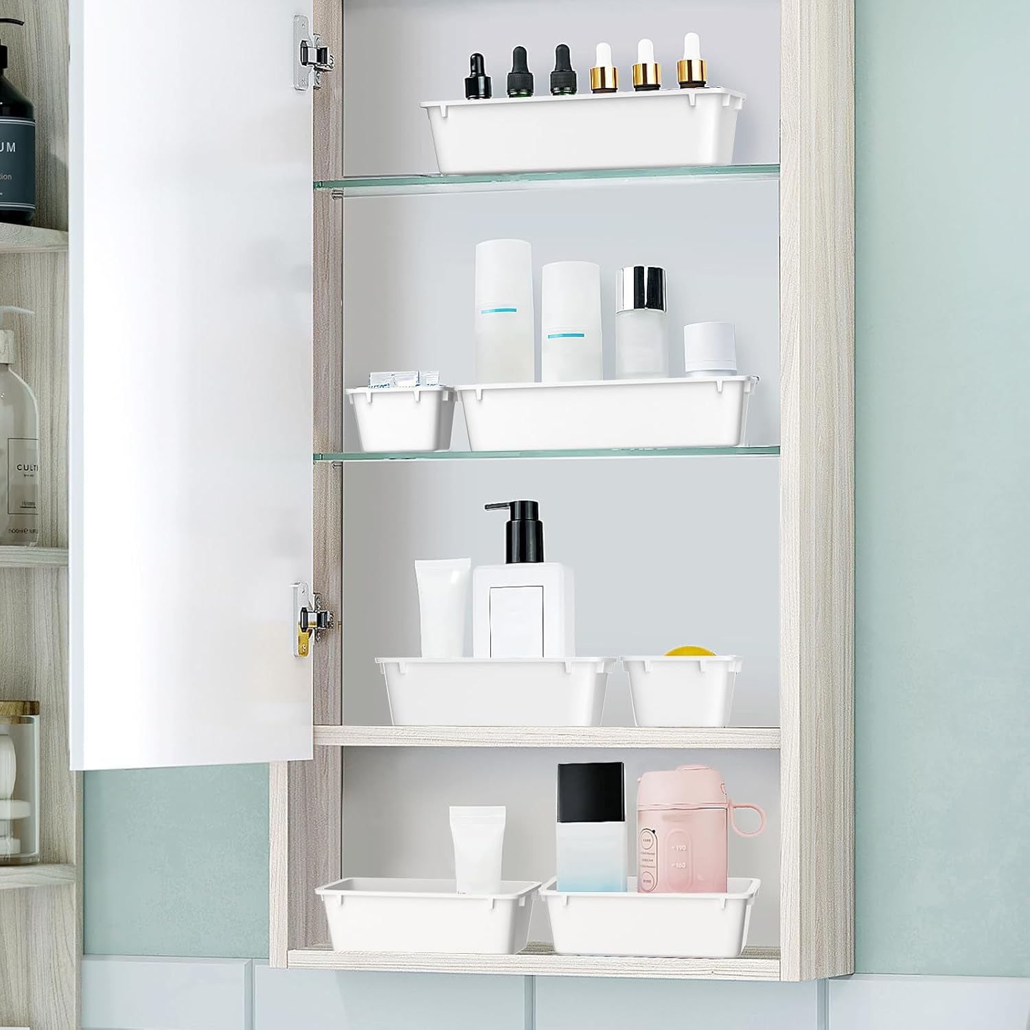 • 4 Combinations of Different Sizes: A set of cabinet organizer includes 25 storage bins of 4 different sizes. Includes: 9 x 6 x 1.8 inches (3pcs), 9 x 3x 1.8 inches(6pcs), 6 x 3 x 1.8 inches(8pcs), 3 x 3 x 1.8 inches(8pcs)