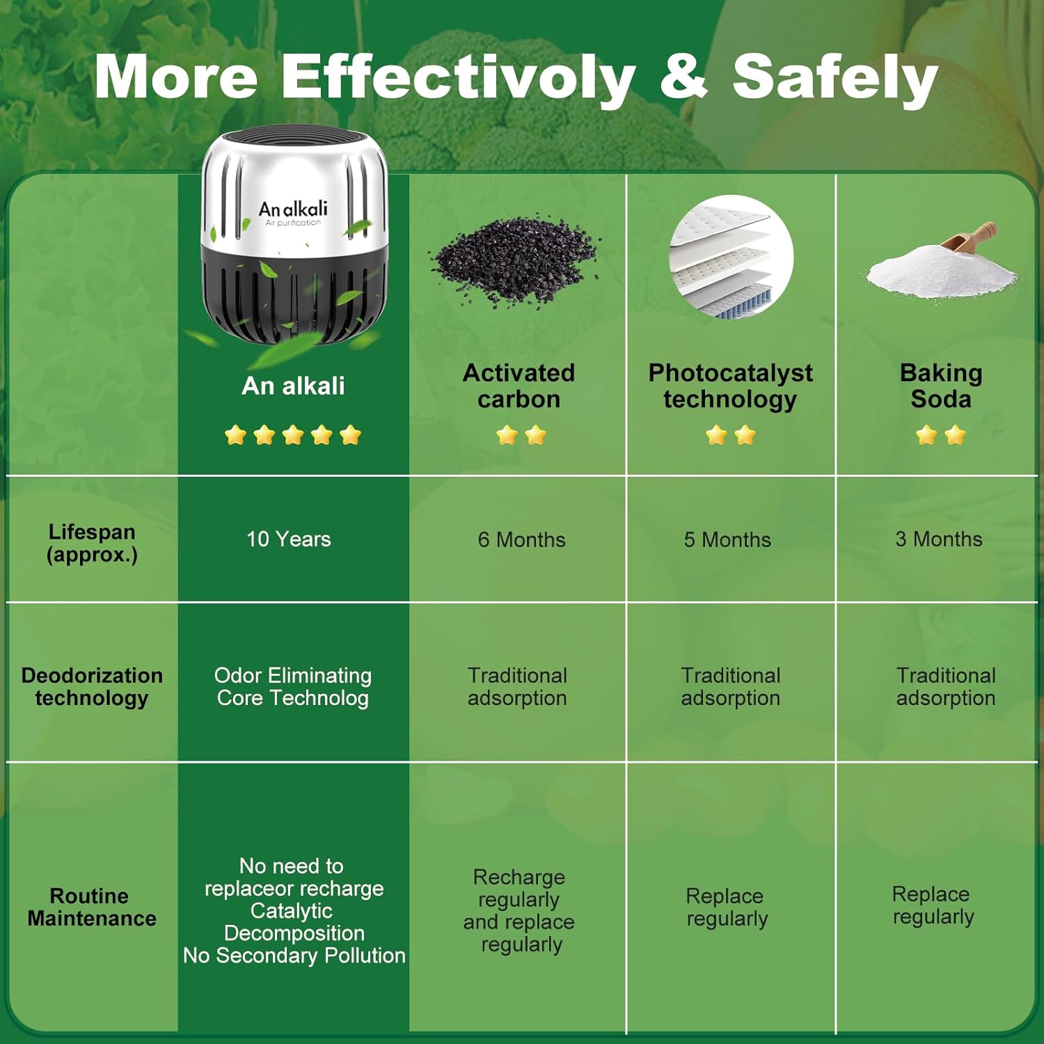 - 【Keeping Products Fresh In The Refrigerator】: Our state-of-the-art technology is your magic bullet for keeping and restoring your refrigerator or freezer fresh and odor-free. In just a few hours, it eliminates the most stubborn and unpleasant odors, leaving your food storage space free of any lingering odors.