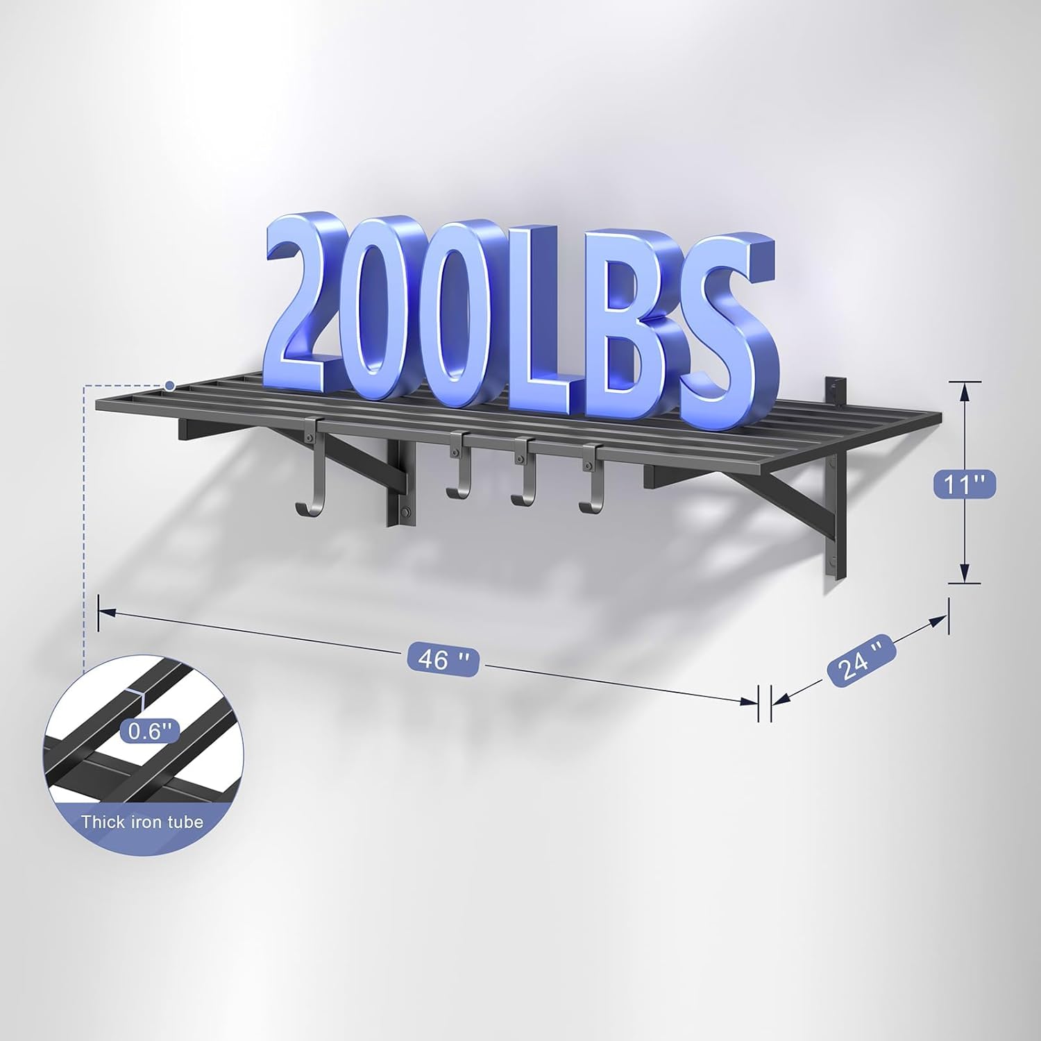 • PREMIUM STRENGTH & STABILITY: Engineered with heavy-duty steel, our wall shelf system features reinforced square tube supports, a seamless integrated frame, and secure U-hooks for superior durability. Every component undergoes rigorous quality testing to ensure maximum safety and long-lasting performance