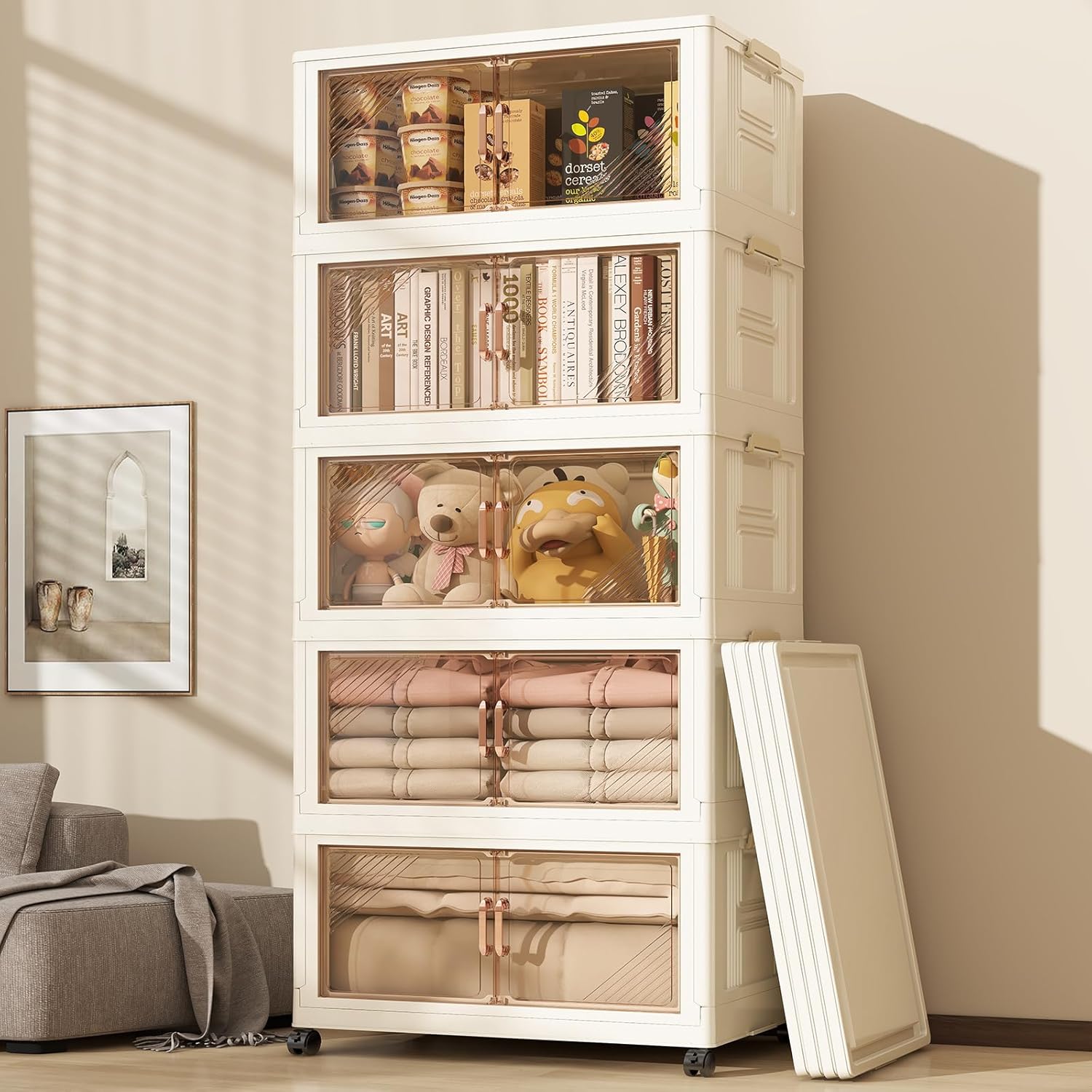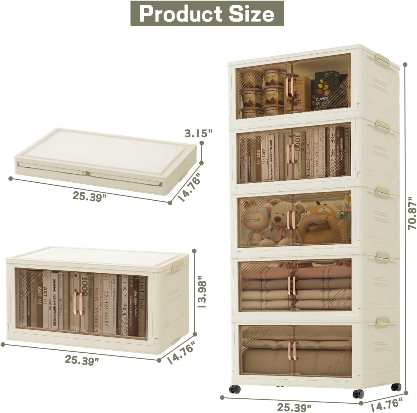 • 【Comes with 5 Lids】Each tier of this storage bin comes with a top lid! Use them together or separately as needed. Made from durable, heavy-duty PP plastic, these collapsible bins feature four flexible wheels at the base for easy movement while cleaning.