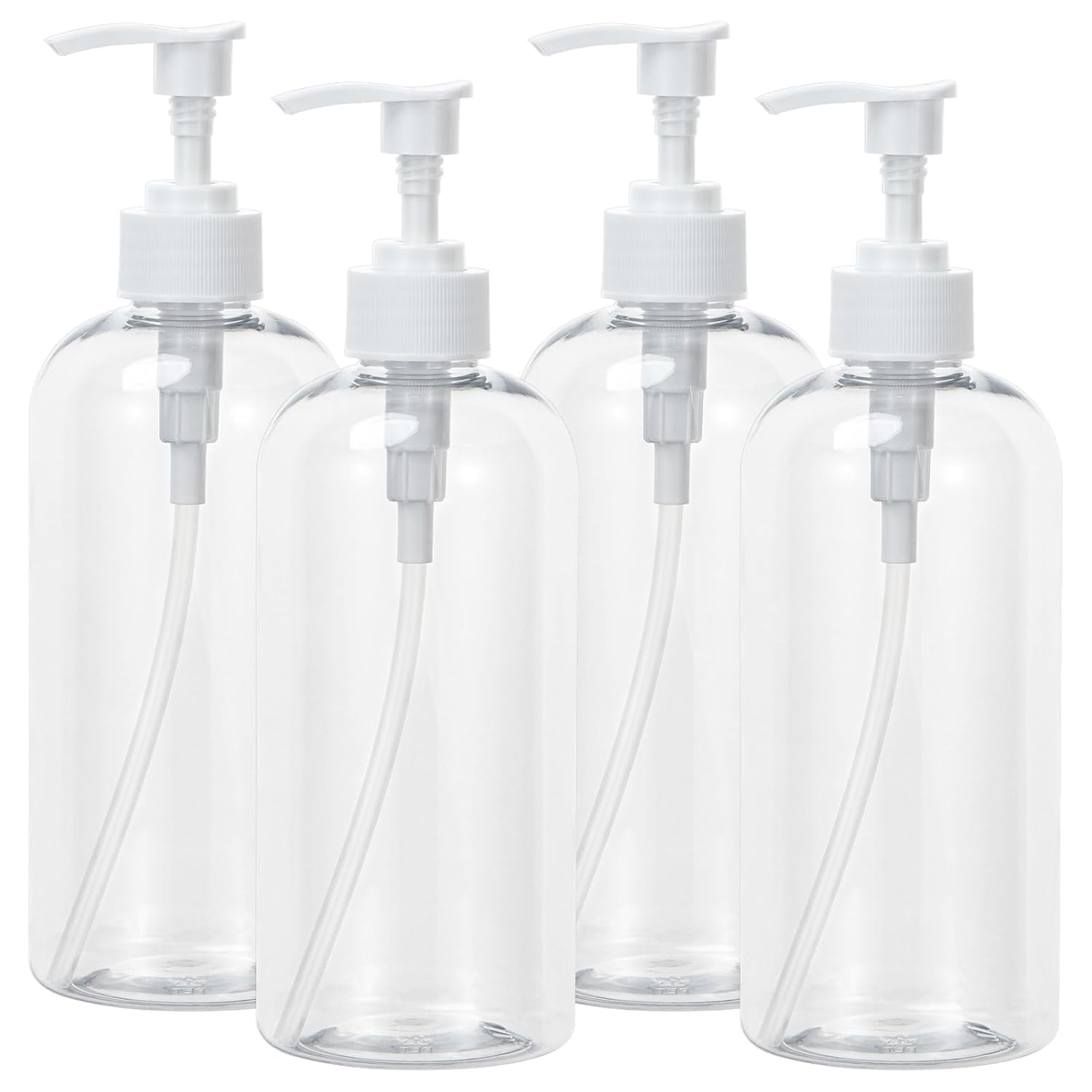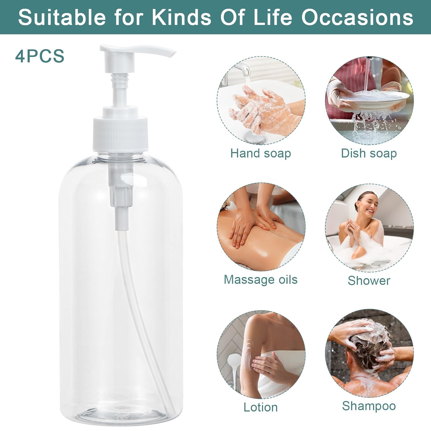 Yebeauty Pump Bottle Dispenser, 3 Pack 17oz/500ml Dish Lotion Soap Dispenser Plastic Liquid Shampoo Container for Bathroom Kitchen Hotel Body Wash, Clear