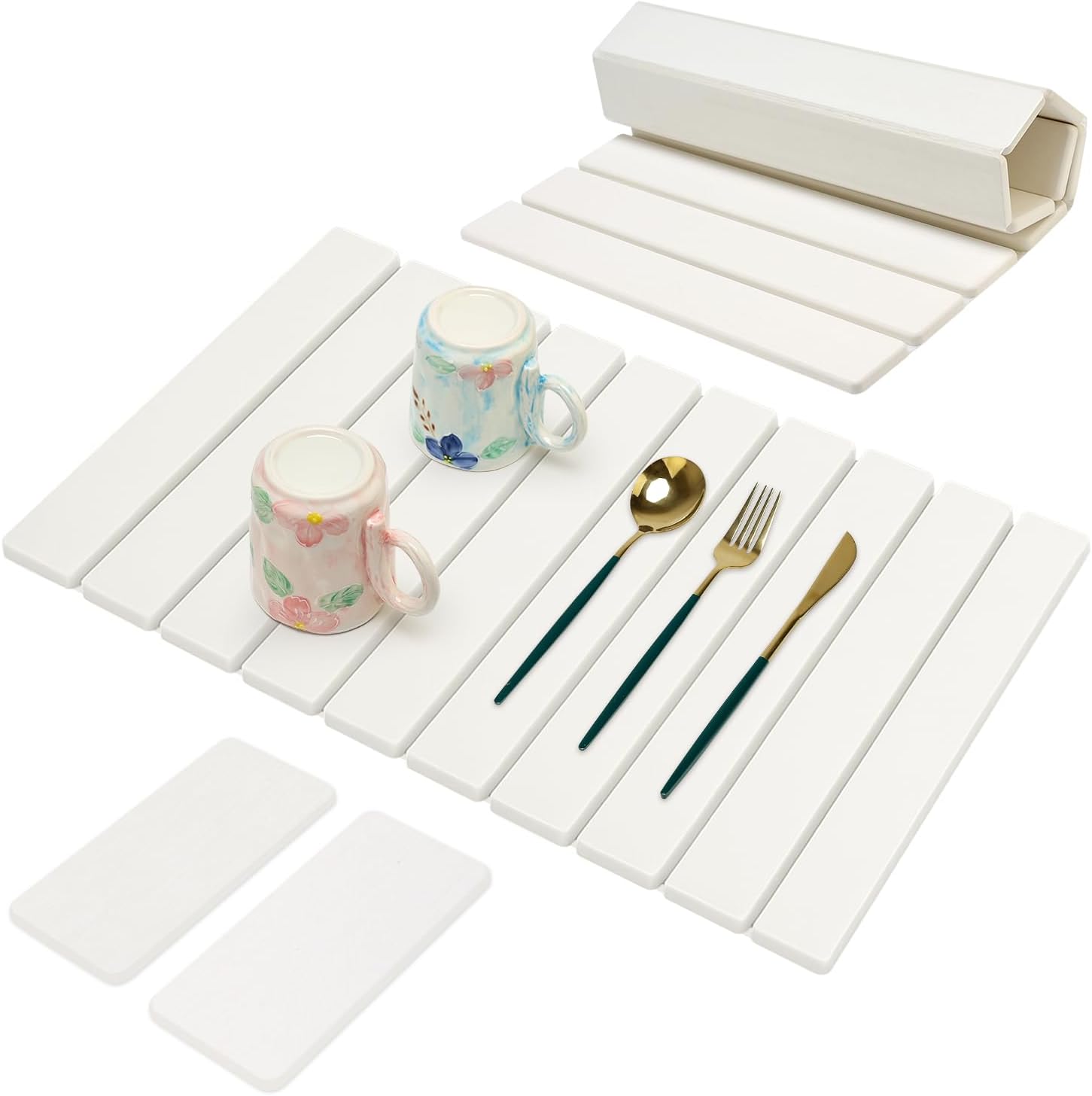 • Multi-Purpose: The dish drying mat xl, which measures 23.6" x 15.3", is ideal for drying dishes, utensils, cups, bottles, and other tableware, also can be used as a trivet, heat proof mat, plant saucer, stone bath mat or a pet food mat. The 2 stone sink trays can perfectly accommodate your hand soap, dish soap, make-up bottles, toothbrush holder, and dish sponge.