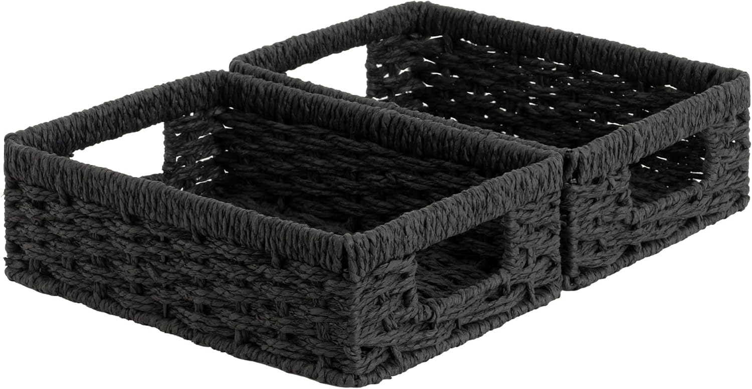 StorageWorks Small, Pantry Baskets, Wicker Storage Baskets for Organizing, Bathroom Shelves, Pantry Organizers and Storage, Black, 2-Pack