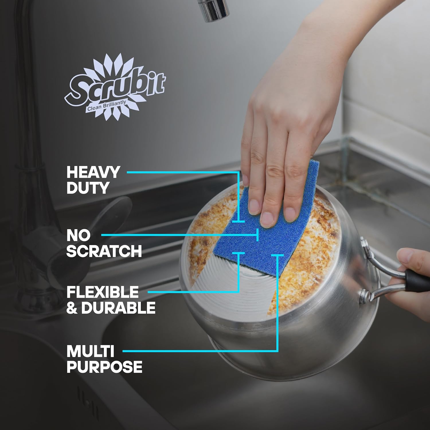 • Drives You Crazy. Say goodbye to smelly sponges and say Hi to Scrubit Scouring Pads - your new best friends in the kitchen. These super strong and durable scour pads will help you to keep your dishes and household appliances sparkling clean after every use. Simply, these little fellows do all the hard work for you!