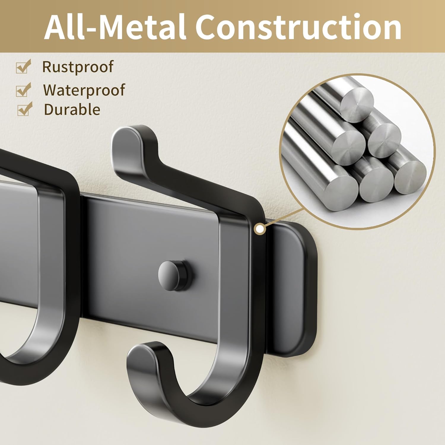 • Rustproof & Waterproof: Designed to withstand moisture and humidity, the black powder-coated finish prevents rust and corrosion—making it perfect for bathrooms, laundry rooms, and other damp areas.