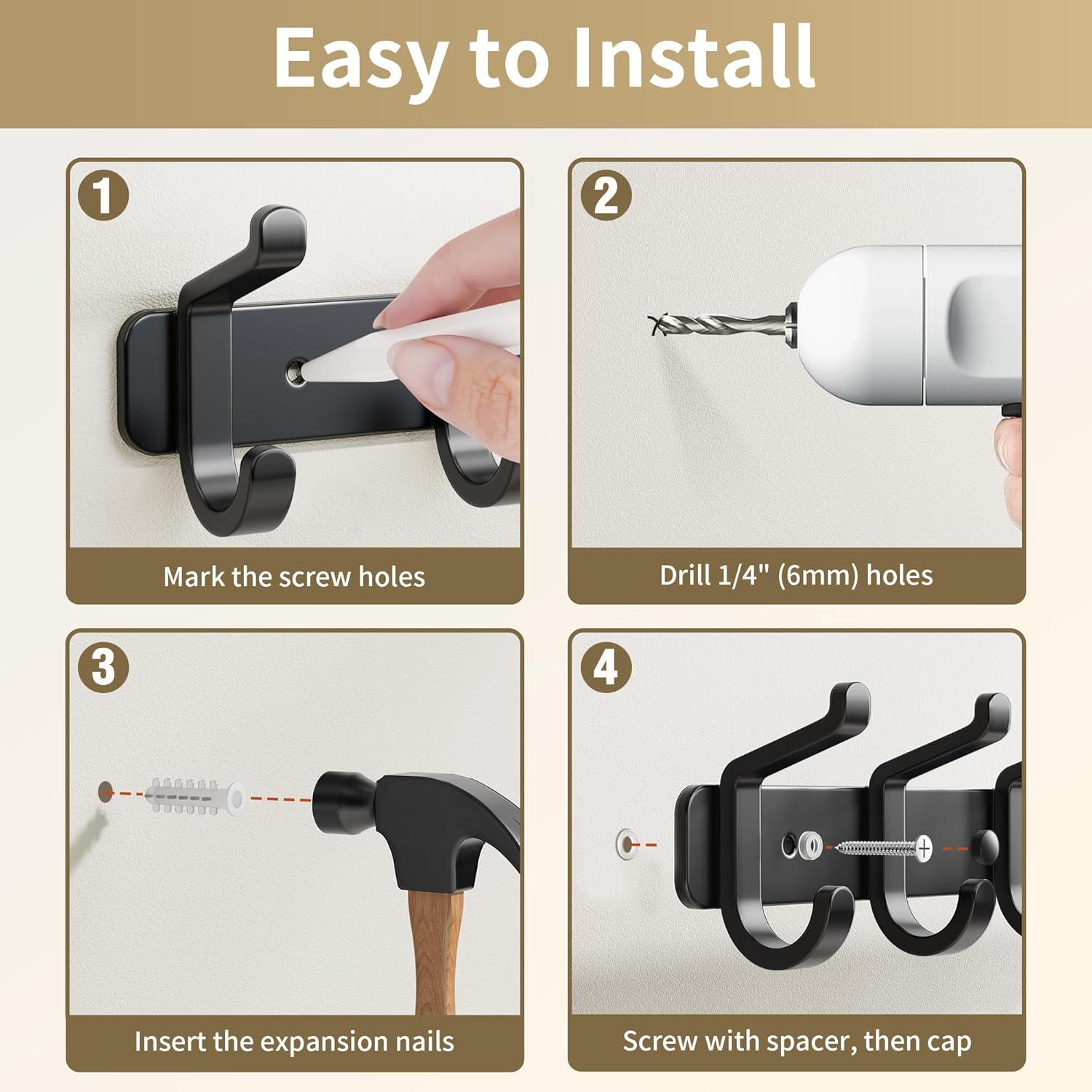 • 6 Hooks for Maximum Storage: Features 6 evenly spaced hooks to keep hats, robes, clothes, towels, bags, and keys neatly organized. Ideal for busy households, this rack helps reduce clutter and keeps essentials within easy reach
