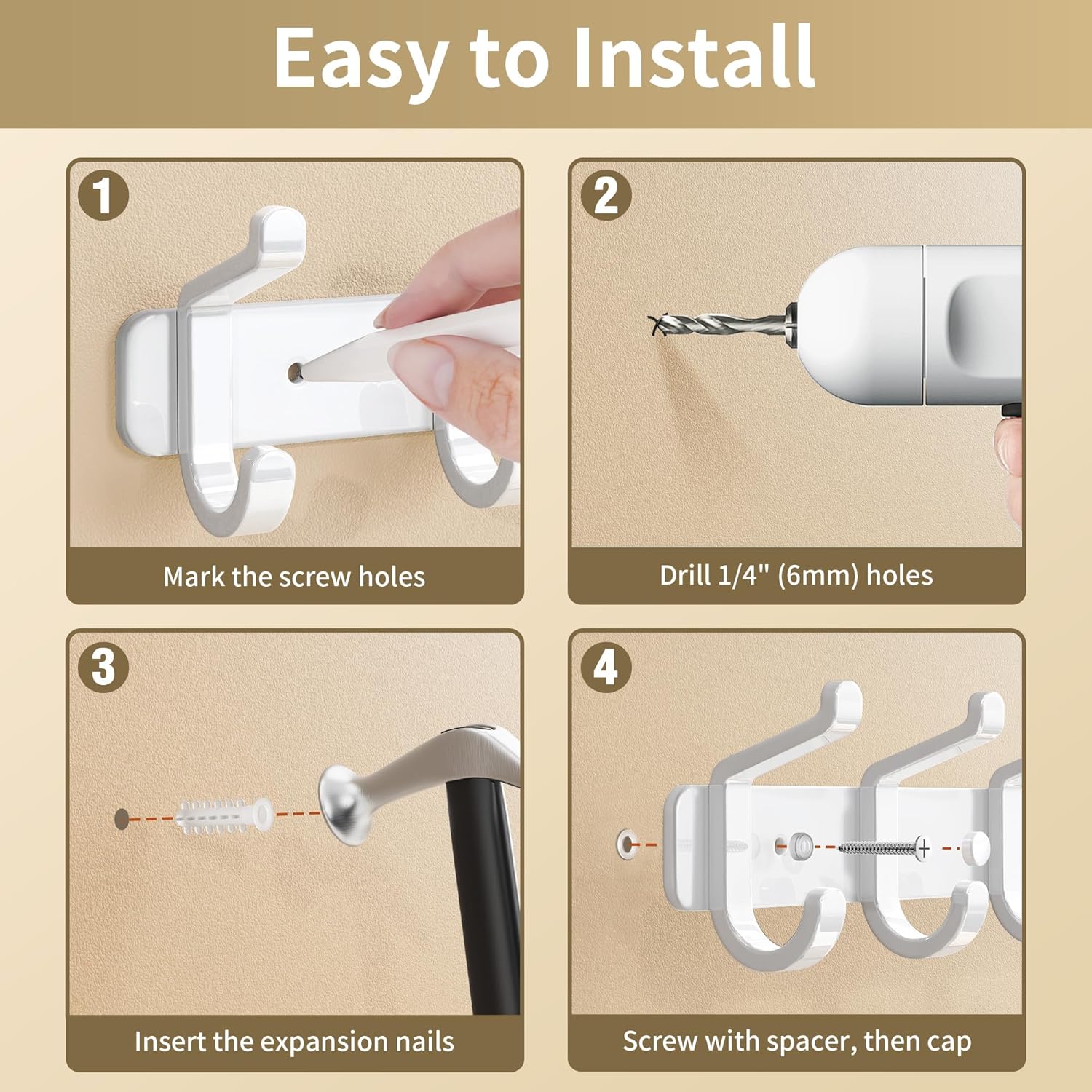 • 6 Hooks for Maximum Storage: Features 6 evenly spaced hooks to keep hats, robes, clothes, towels, bags, and keys neatly organized. Ideal for busy households, this rack helps reduce clutter and keeps essentials within easy reach