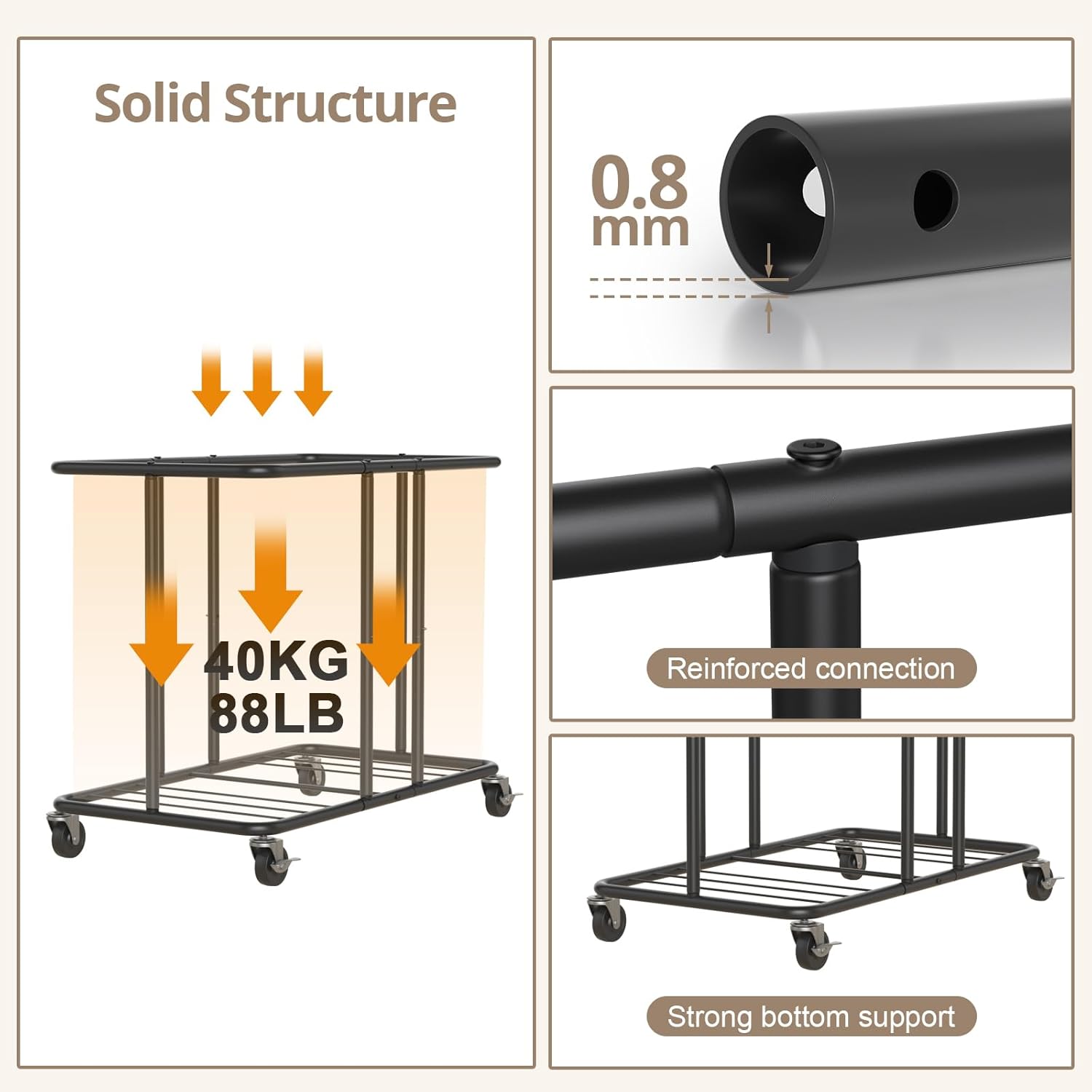 • ✔ 【Ultra-Smooth & Silent Wheels】Thick rubber casters (2 lockable) glide effortlessly on any floor - even carpet - with zero noise or floor scratches. Say goodbye to straining with heavy loads!