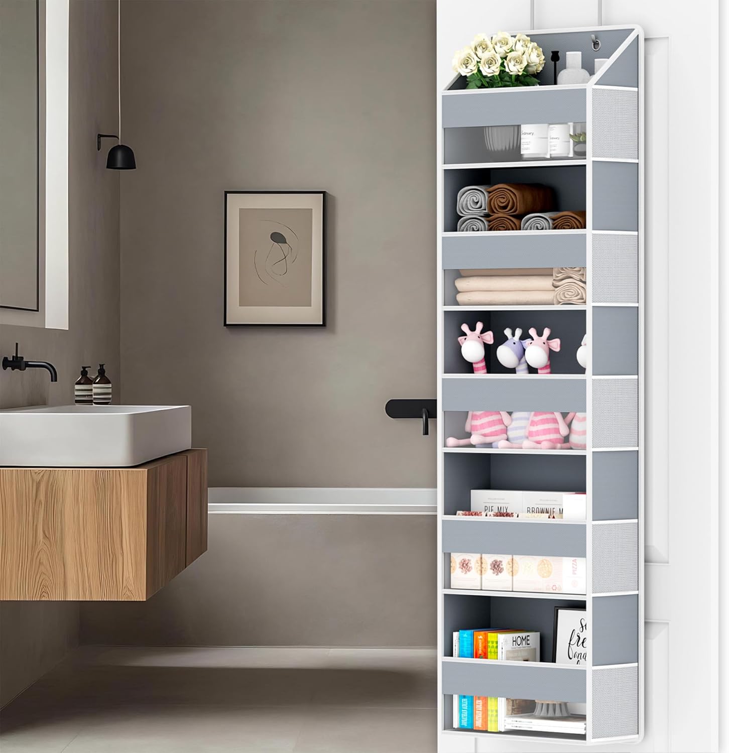 - Quick Setup, Zero Hassle - Turn any door into a tidy storage zone in seconds. Simply hang the over door organizer on your closet or bathroom door using rust-resistant metal hooks and insert the rigid boards. In a matter of minutes, you have a great room organizer