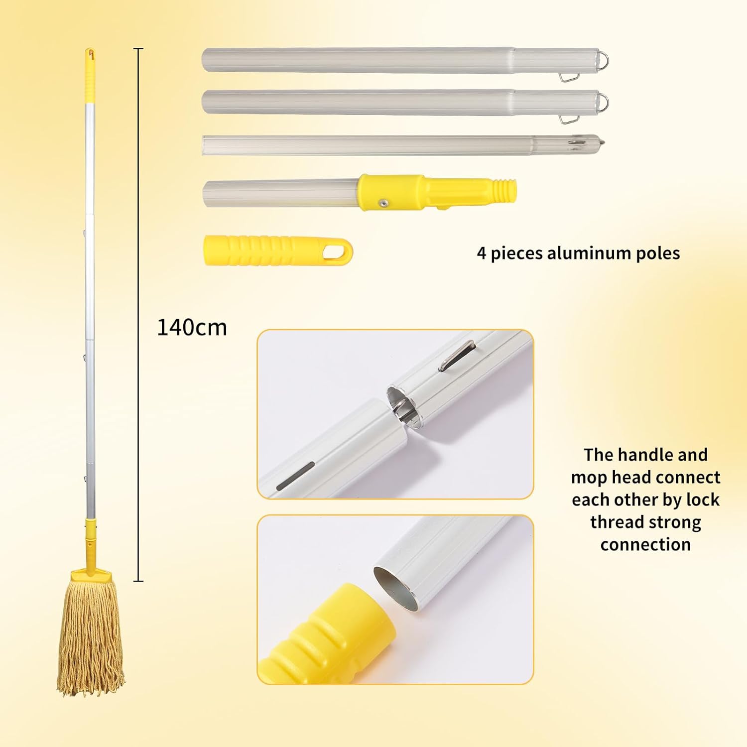• Equipped with 360-degree 4pieces smooth-rolling casters wheels, ensuring the mop can move flexibly in any direction,significantly boosting work efficiency. bright yellow color for easy visibility and added safety.
