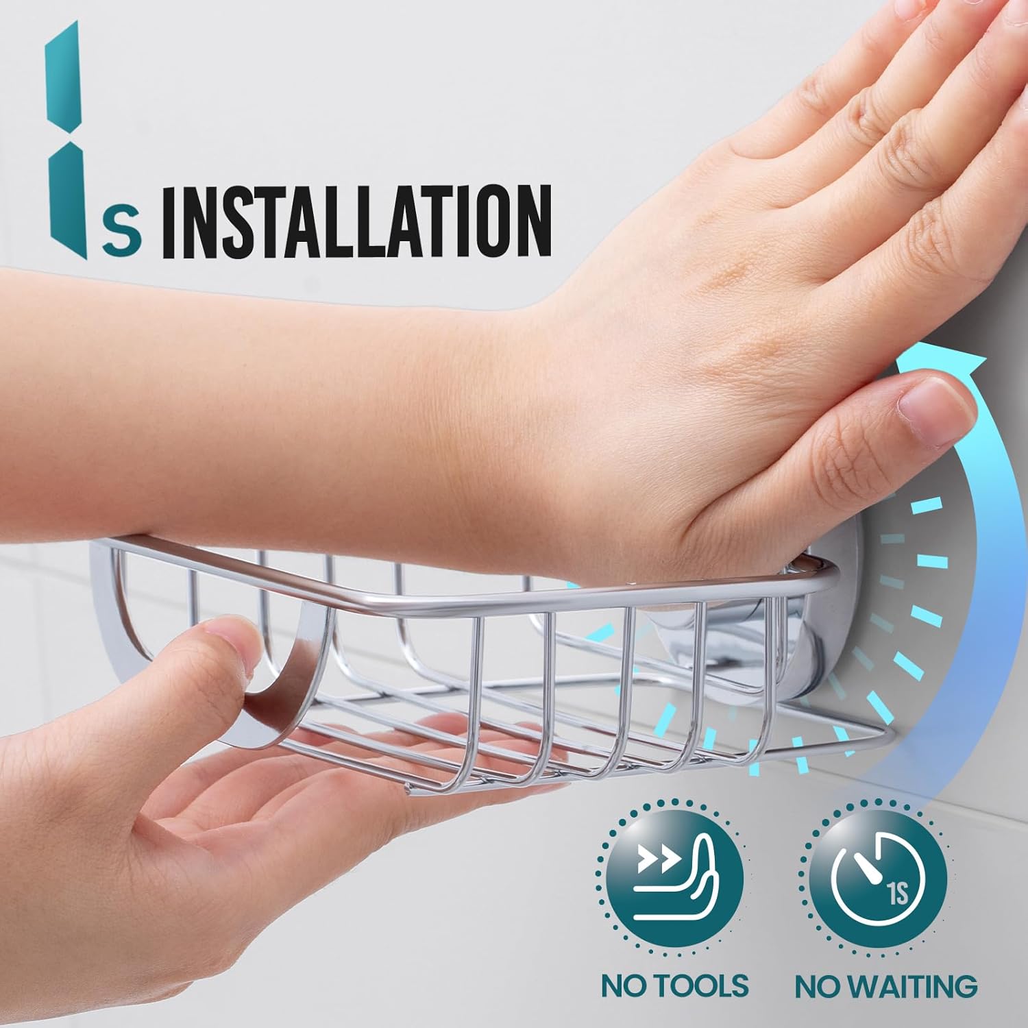 • POWERFUL SUCTION: Crafted from premium, rustproof metal, our soap dish features a suction cup inspired by the bionic design of an octopus sucker. Made from anti-aging TPE material, this suction cup can securely hold up to 11 lbs and adheres firmly to smooth surfaces